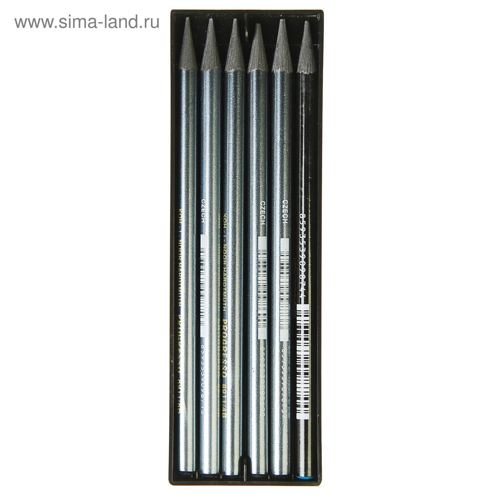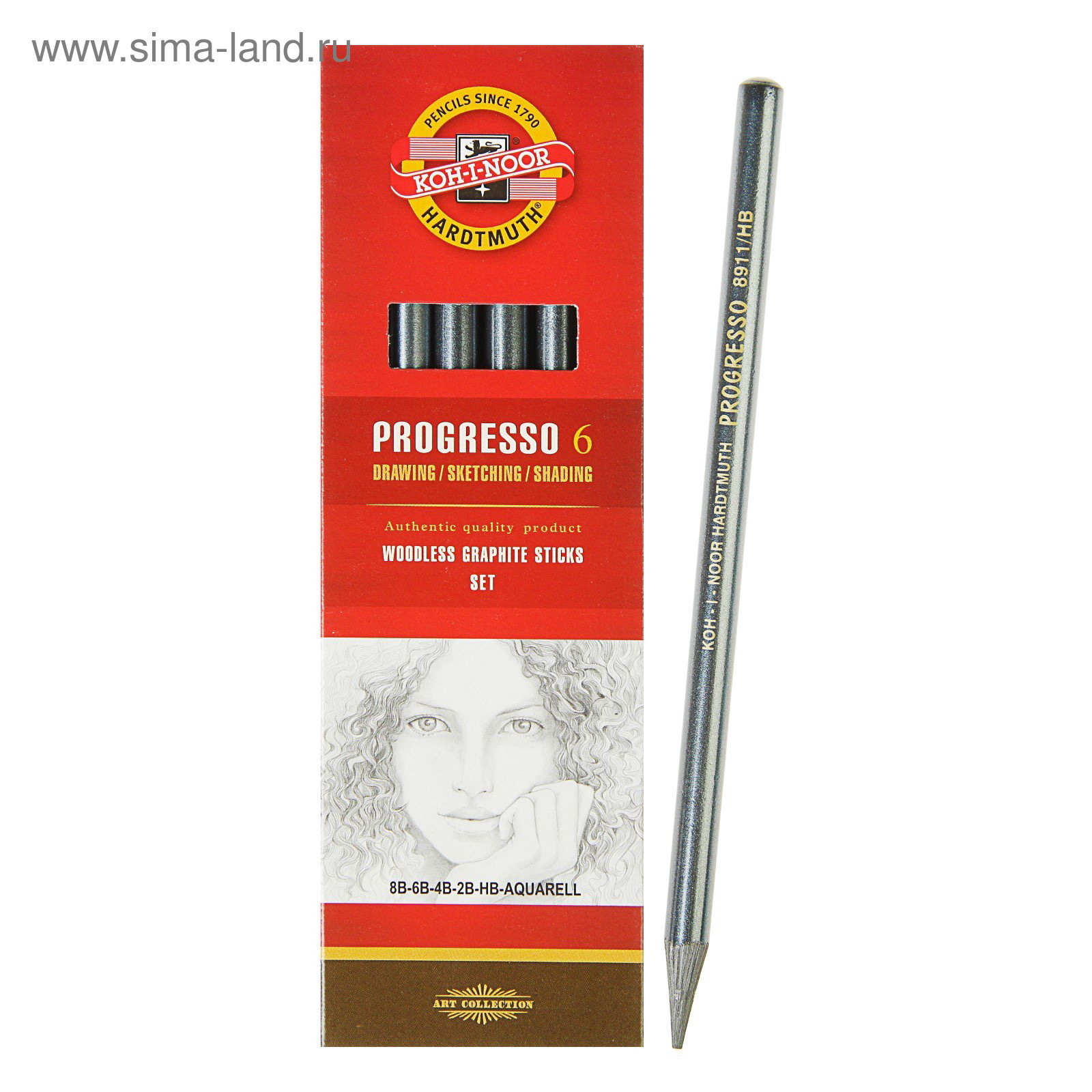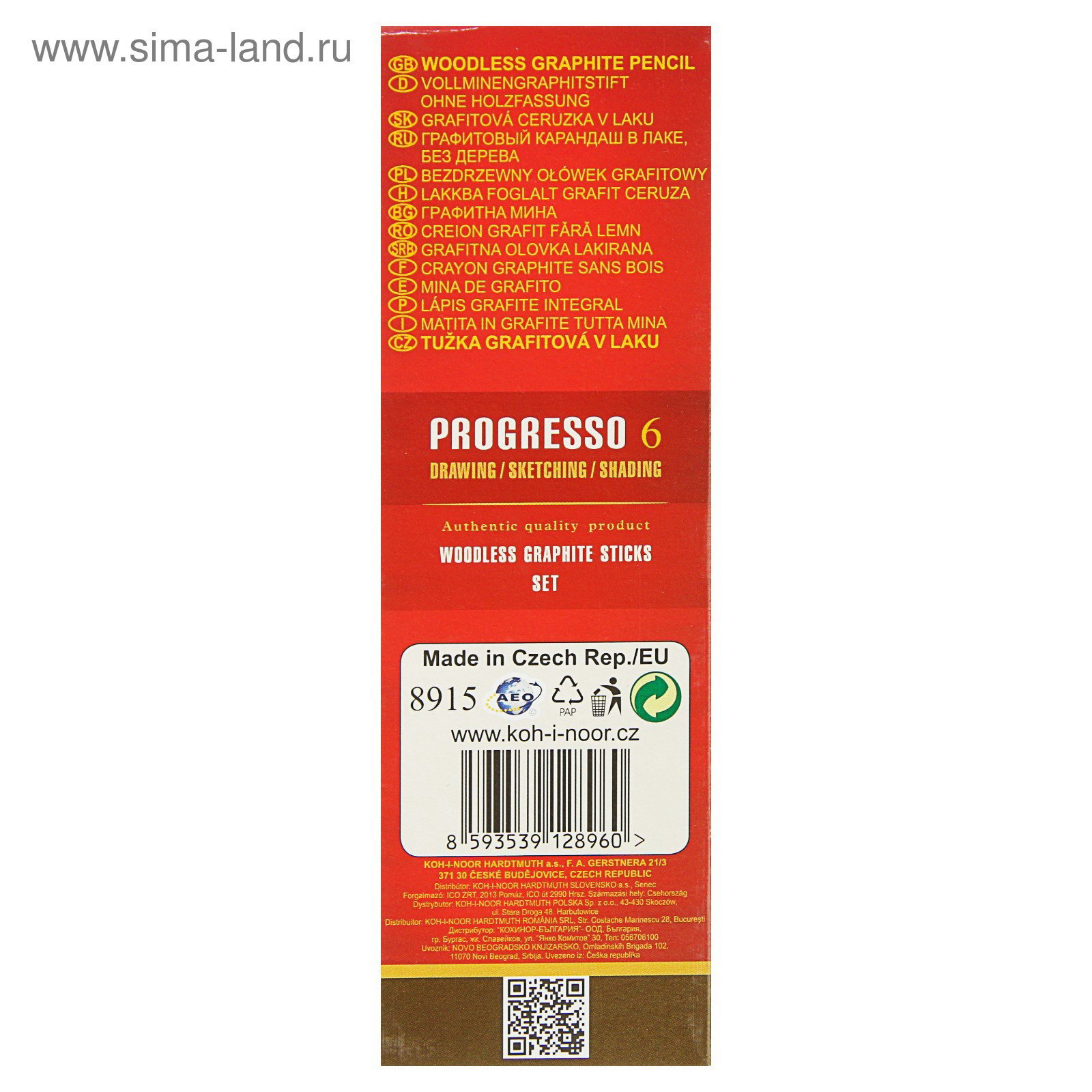Набор карандашей цельнографитовых. PROGRESSO 8915, 6 штук, разной твёрдости, круглый, 16x1x5 см., Koh-I-Noor, Чехия