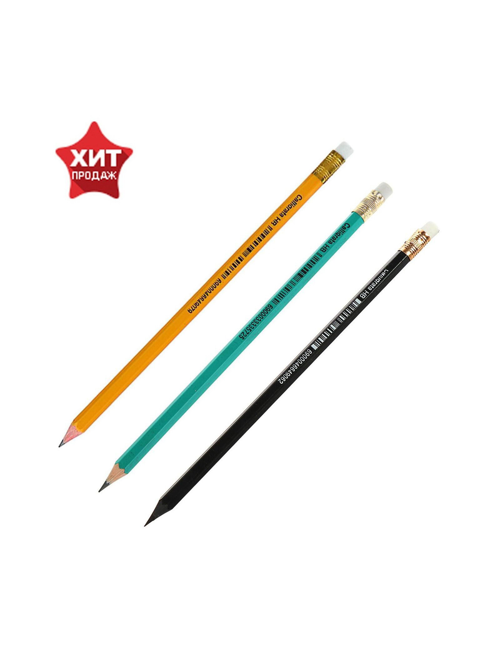 Размер упаковки: 4 x 0.5 x 23 см. Реестр Минпромторга: Нет Цвет: МИКС Материал корпуса: Пластик tnved: 9609909000 tnved: 9609909000 Утолщённые: Нет Европодвес: Да В наборе, шт.: 3 Набор: Да Штрихкод на единице товара: Да Тип: Для школы и офиса Форма: Шестигранные Твёрдость грифеля: HB (ТМ) Рисунок: Нет Особенности: С ластиком Универсальный карандаш для дома, офиса и школы. Обладает жесткостью Н (твёрдый), подходит для чертежей, письма и рисования.