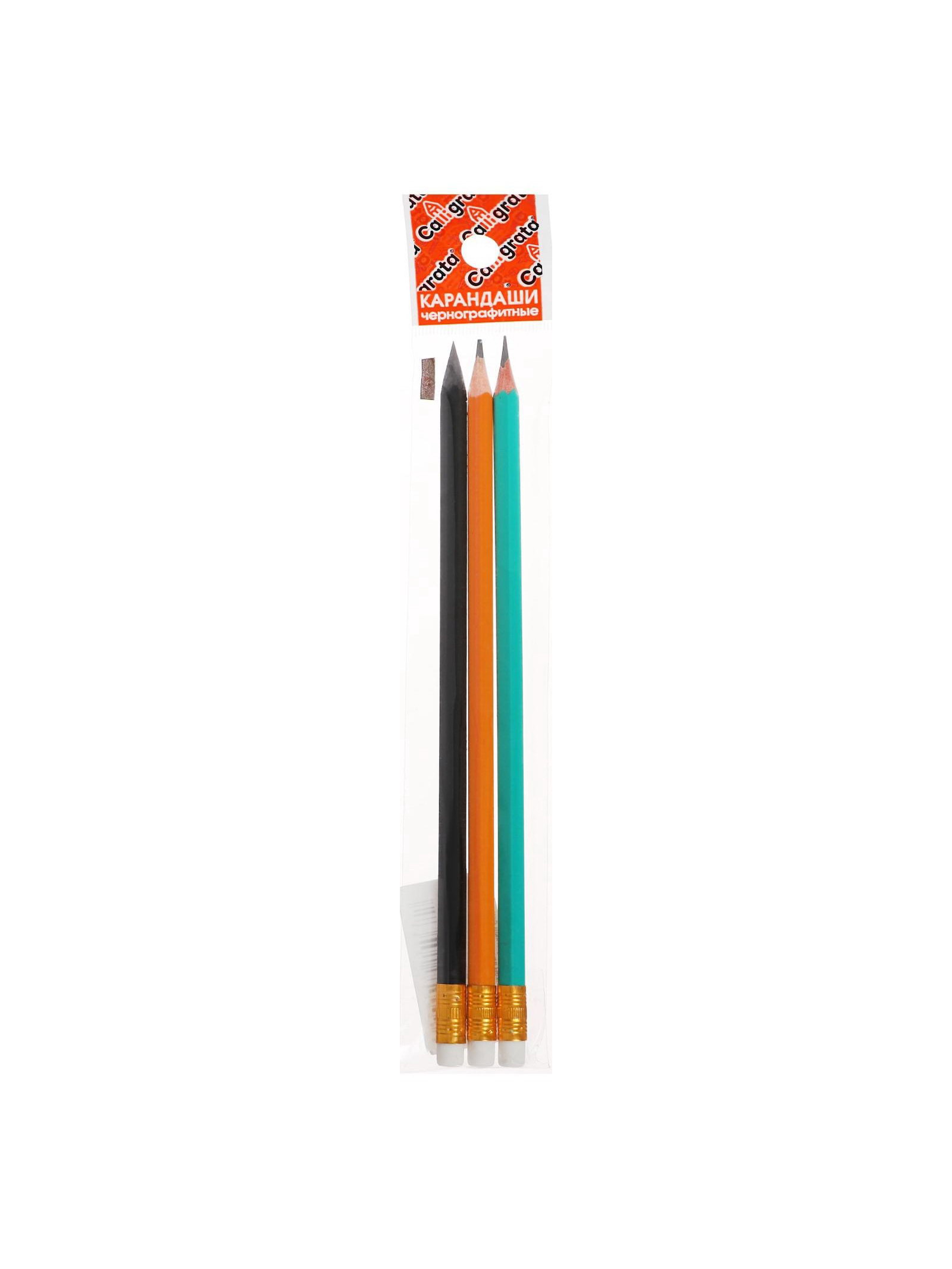 Набор карандашей чернографитных 3 штуки, HB, пластиковых, с ластиком, корпус микс, Calligrata, Россия