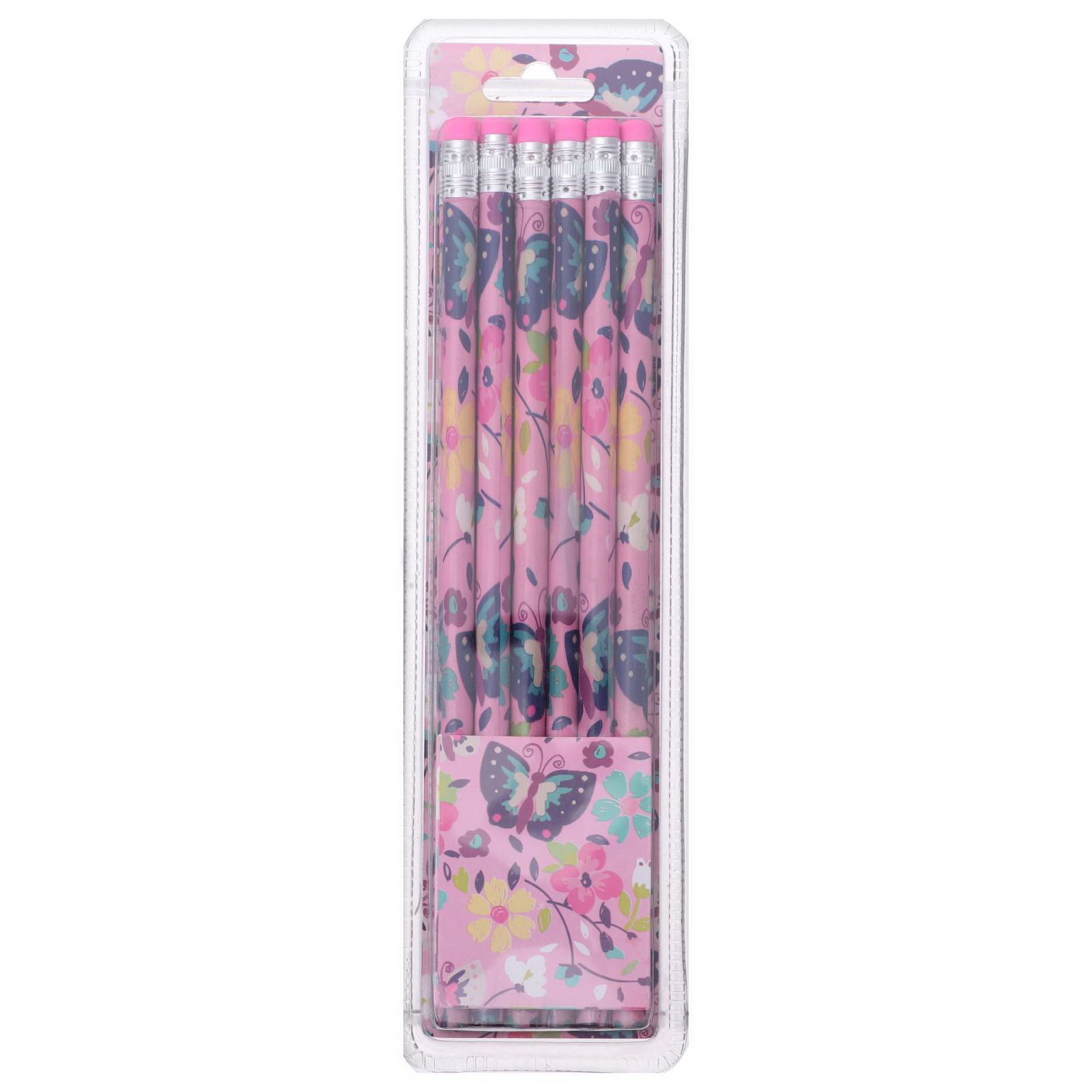 Набор карандашей чёрнографитных с ластиком "Бабочки", 12 штук, твёрдость НВ, 0.7x0.7x19 см., Calligrata, Китай