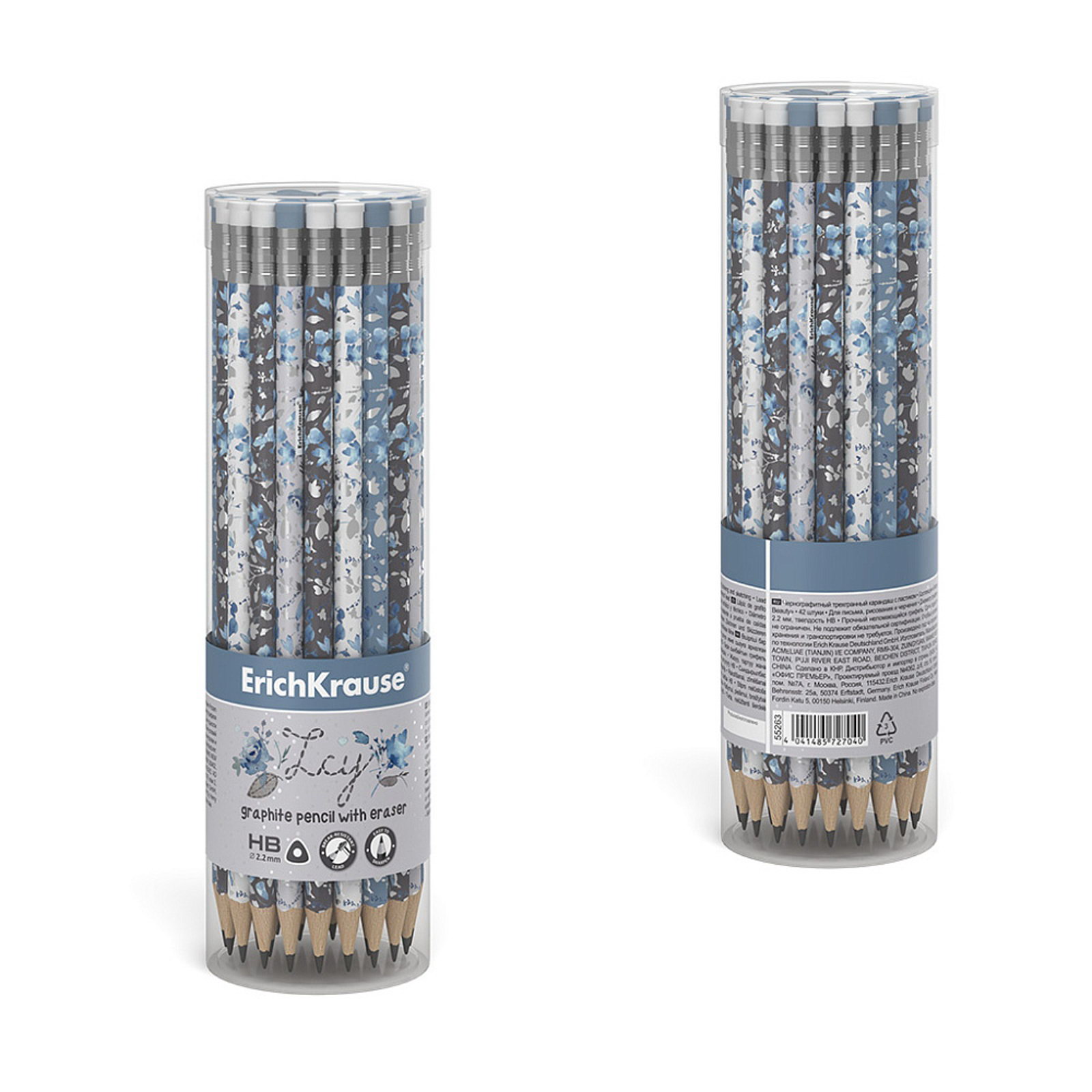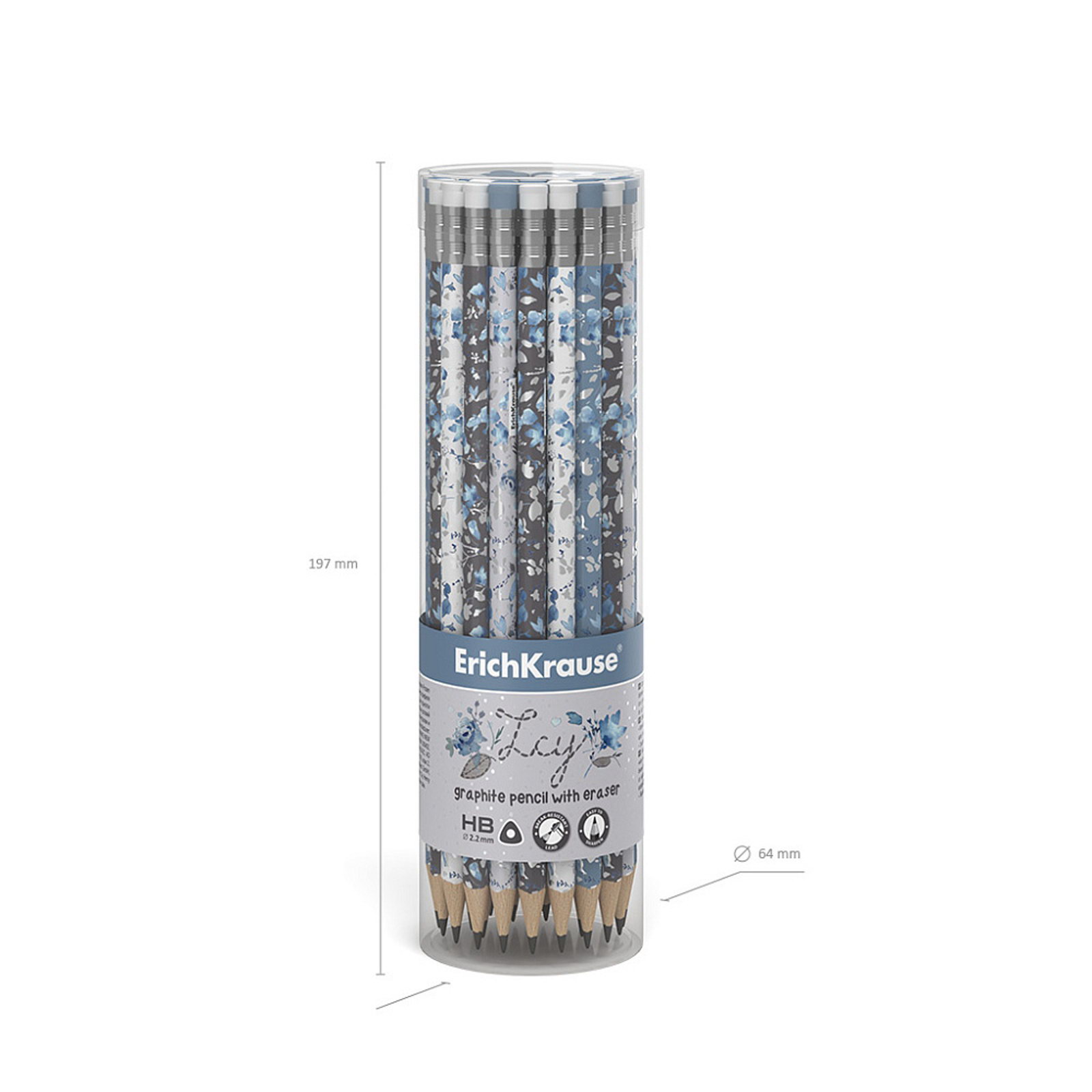Карандаш чернографитный, "Frozen Beauty", с ластиком, HB, d=2.2 мм, дерево, трехгранный с принтом, в тубусе, микс, 0.7x18.8x0.7 см., ErichKrause, Индия