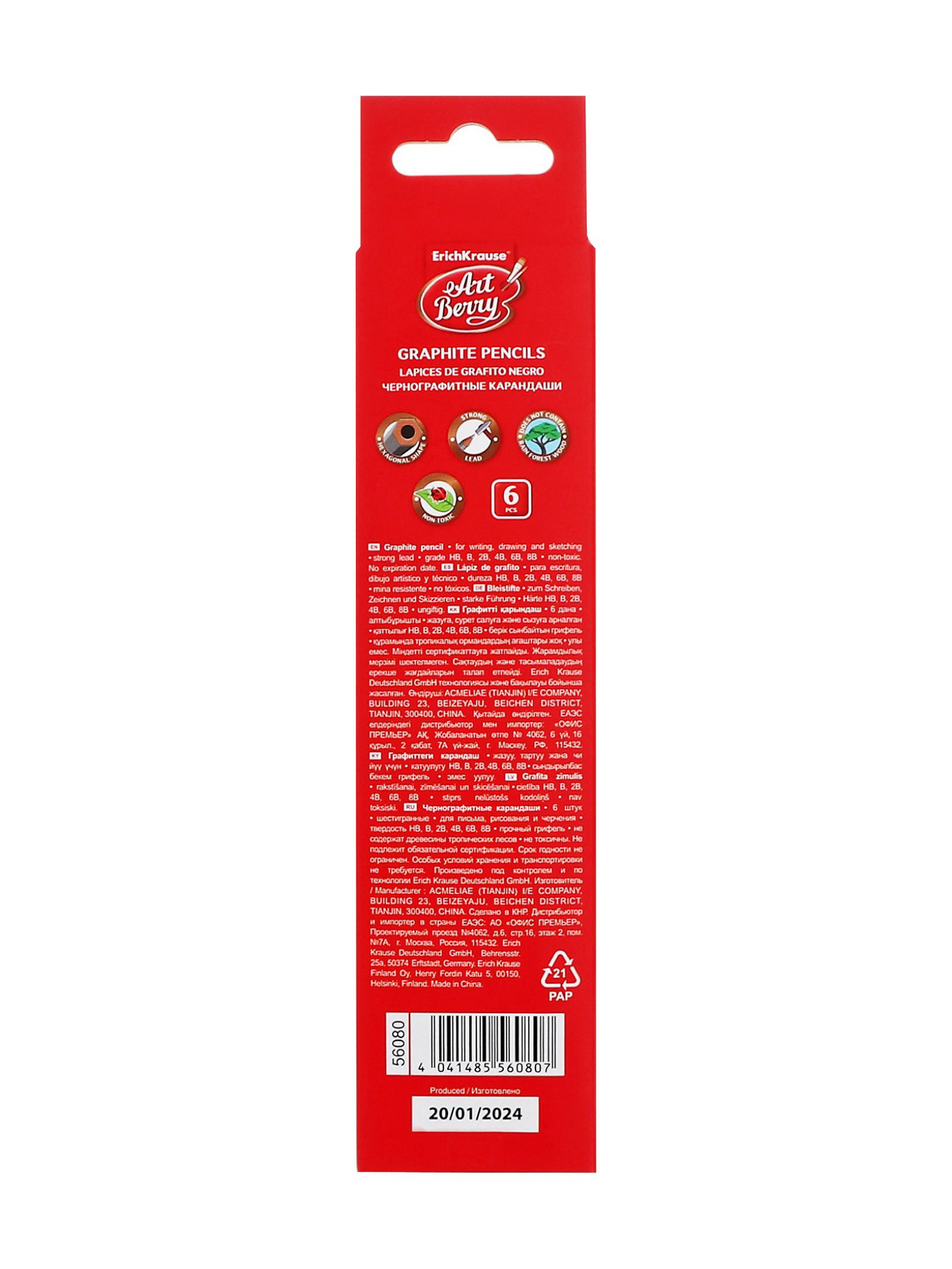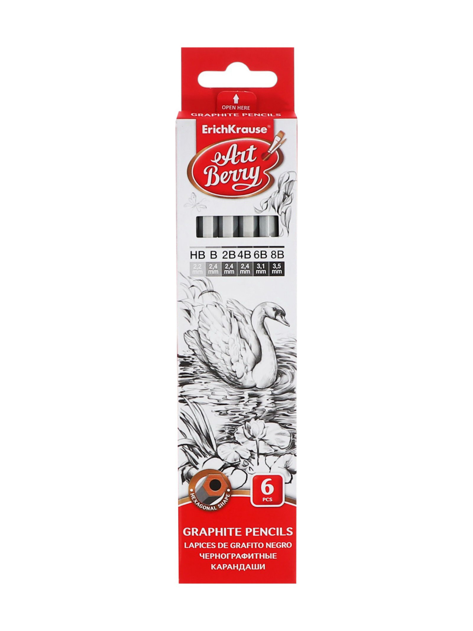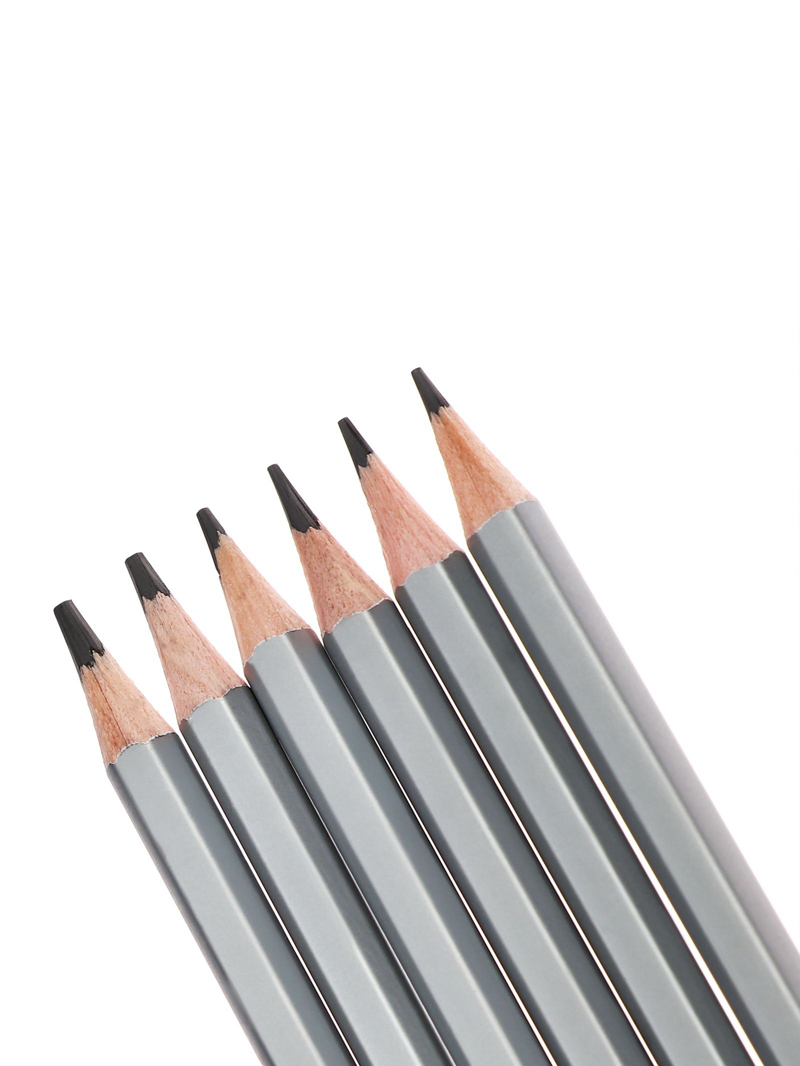 Набор карандашей чернографитных различной твердости 6 штук, грифель d=2.2 мм, шестигранные, ударопрочные, серебро, в коробке, 4.6x17.8x0.8 см., ErichKrause, Китай