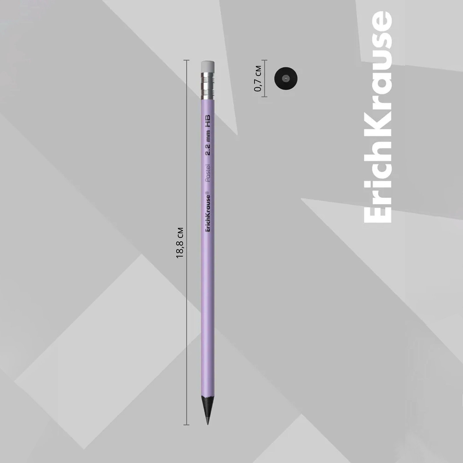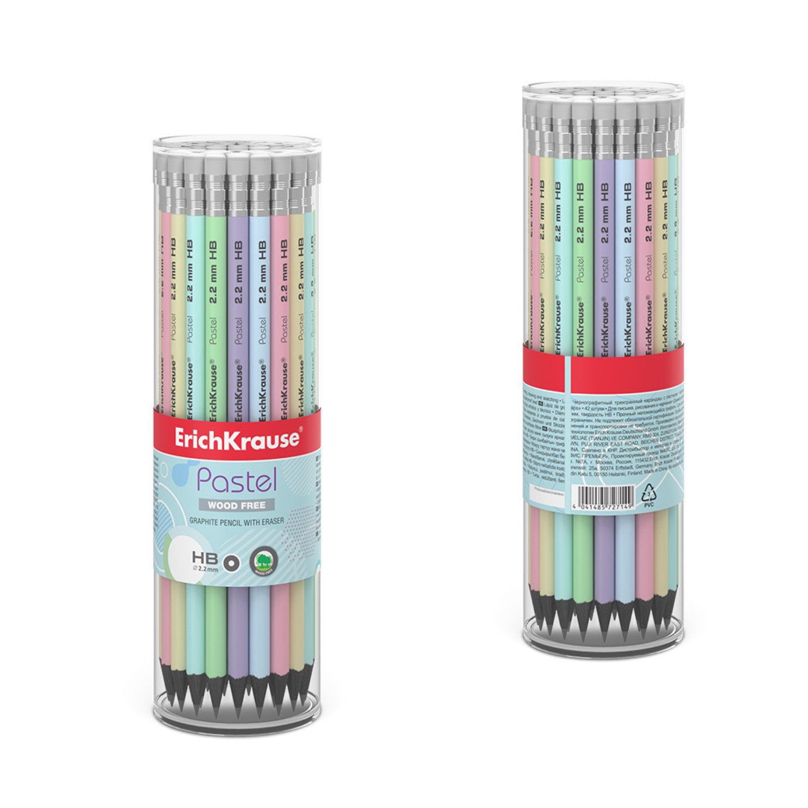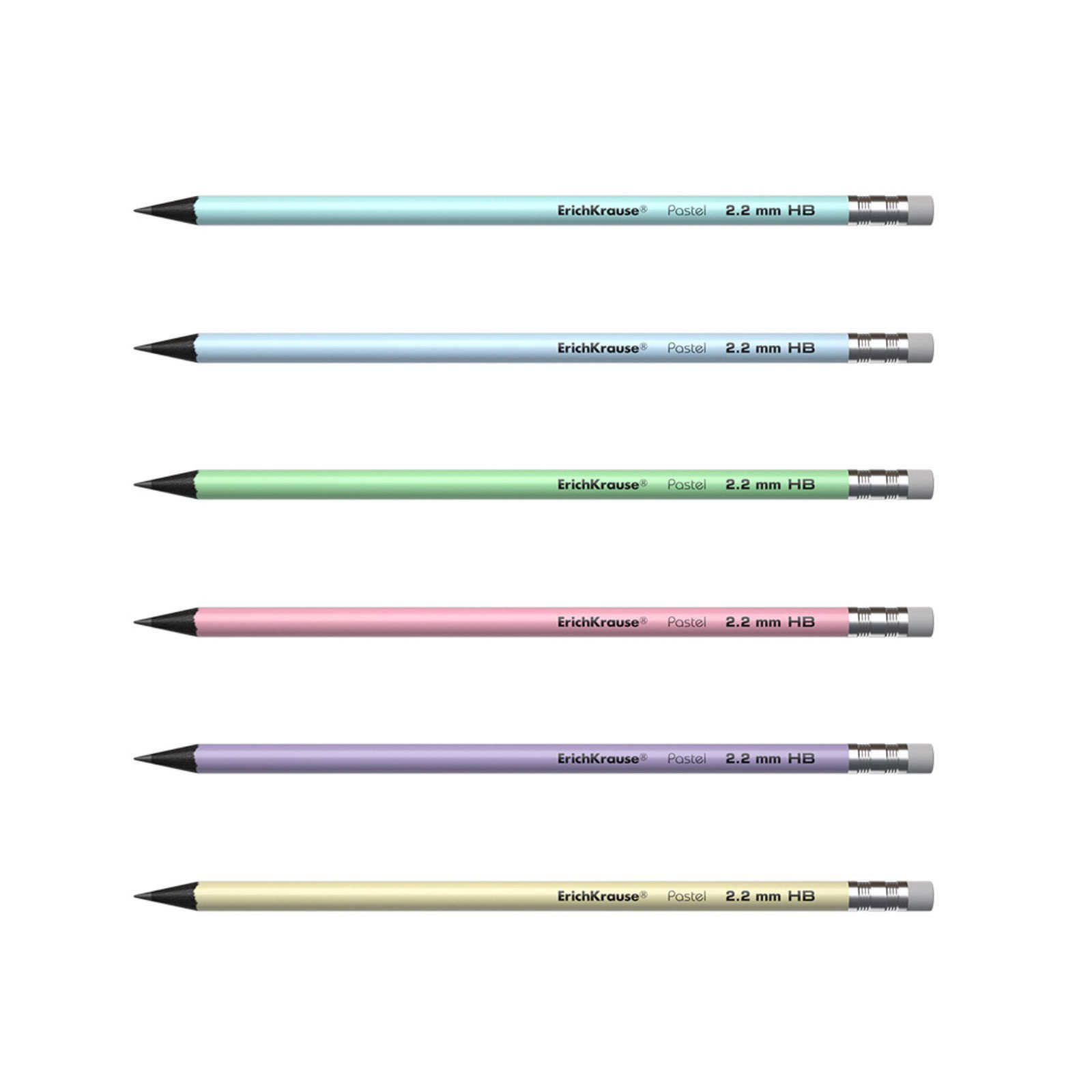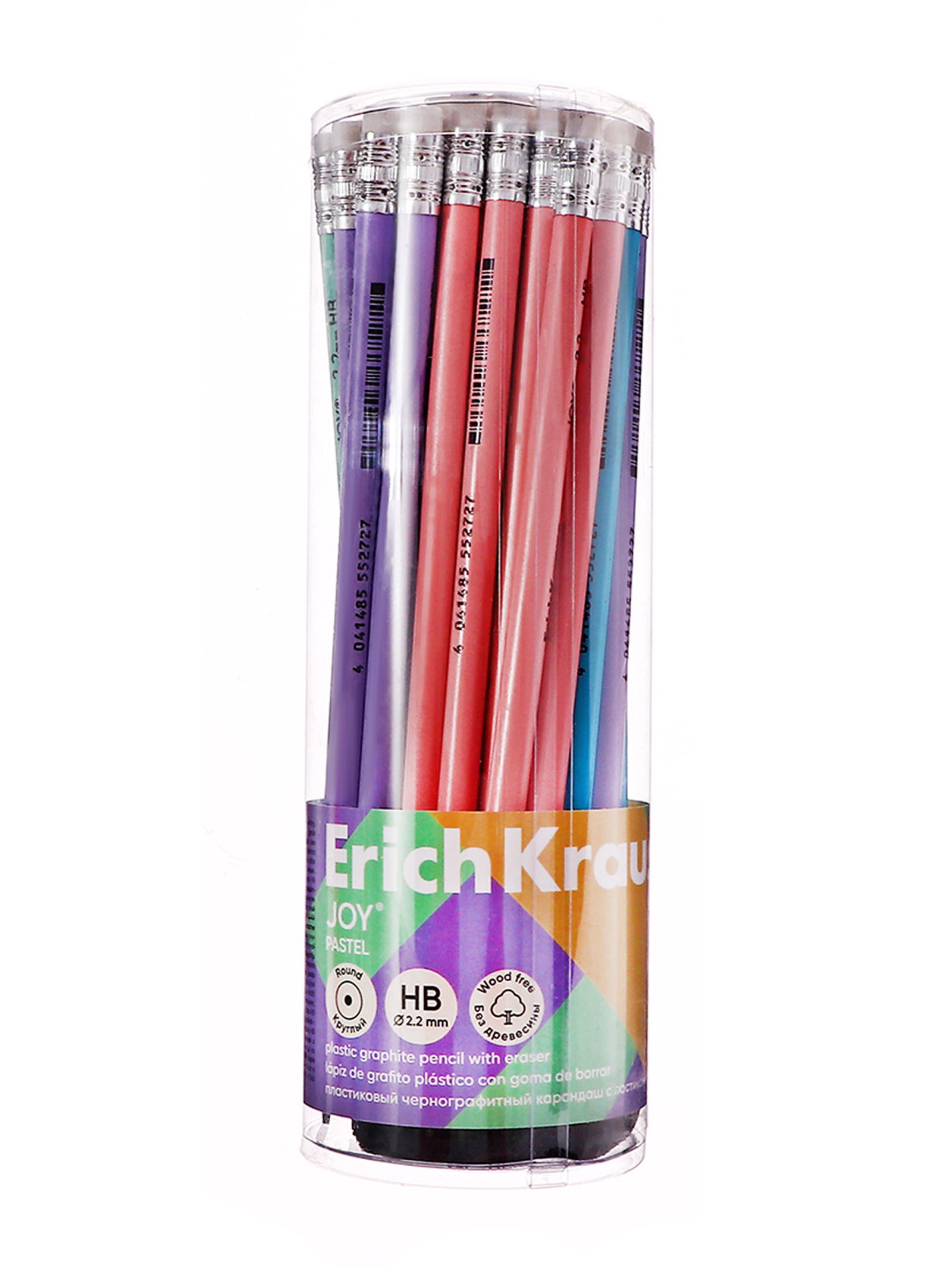 Карандаш чернографитный с ластиком "Pastel", HB, грифель d=2.2 мм, пластик, круглый в тубусе, пастель МИКС, 0.7x0.7x18.8 см., ErichKrause, Китай