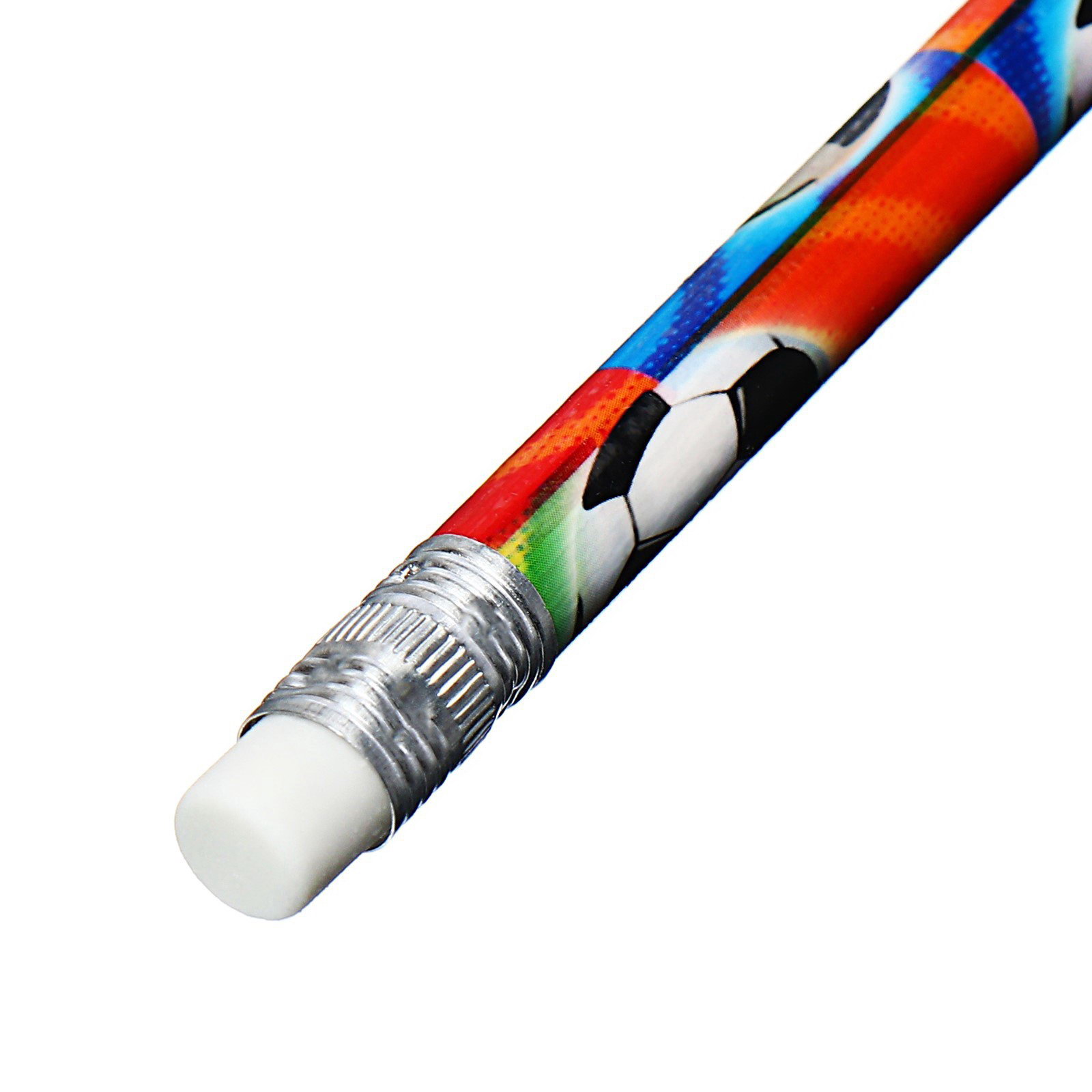Карандаш чернографитный "Футбол", НВ, незаточенный, с ластиком, круглый, 0.7x18.8x0.7 см., Calligrata, Китай
