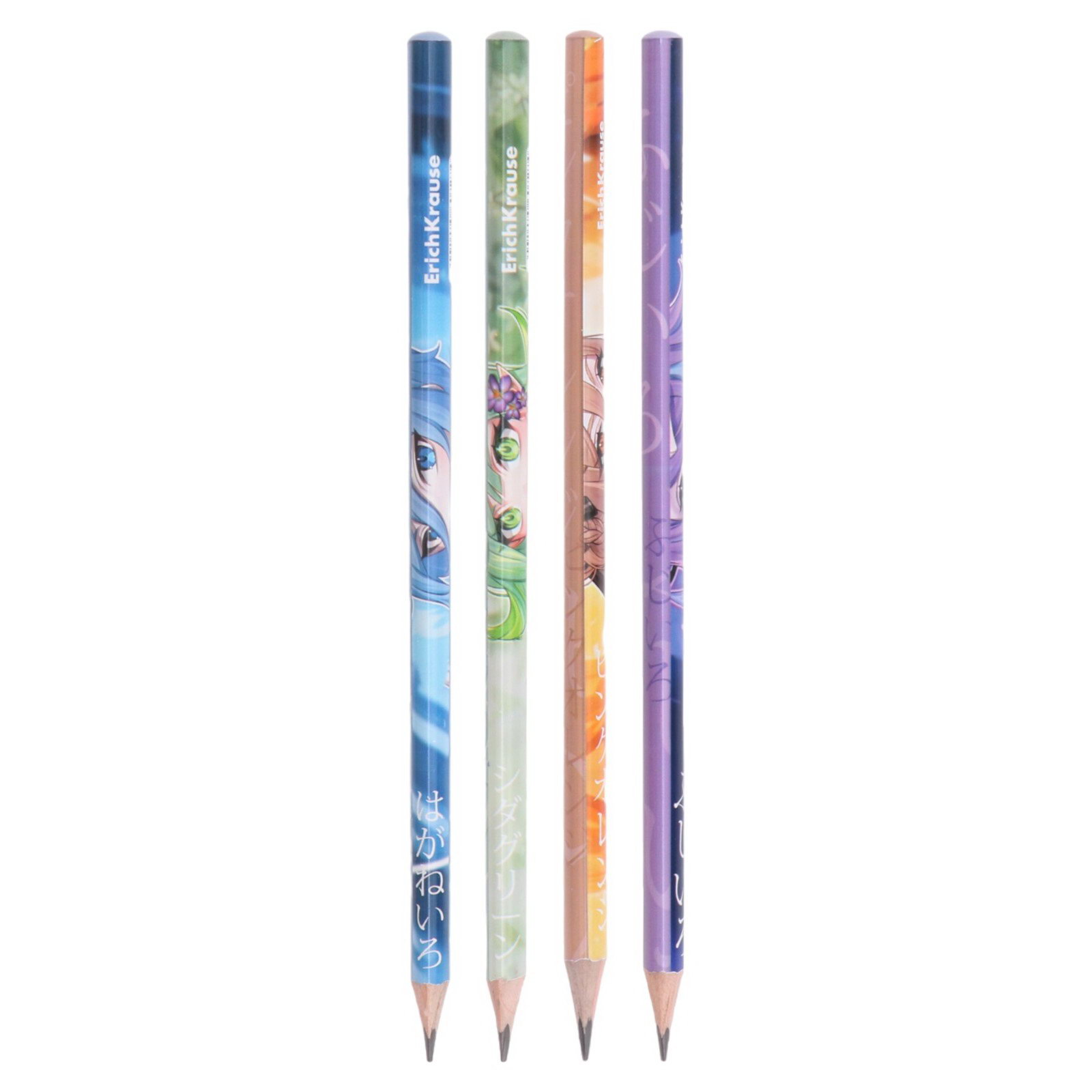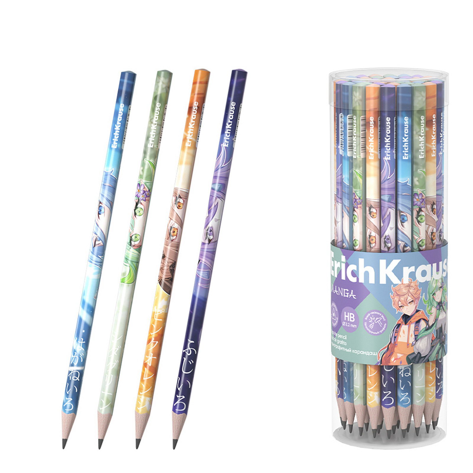 Карандаш чернографитный "Manga", НВ, грифель d=2.2 мм, дерево, трехгранный, в тубусе, микс, 18.8x0.7x0.7 см., ErichKrause, Китай