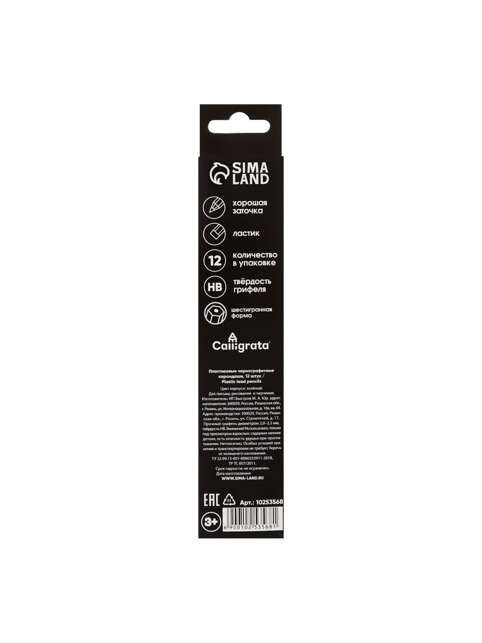 Карандаш чернографитный, HB, заточенный, шестигранный, с ластиком, зелёный, пластик, 0.7x18.5x0.7 см., Calligrata, Россия