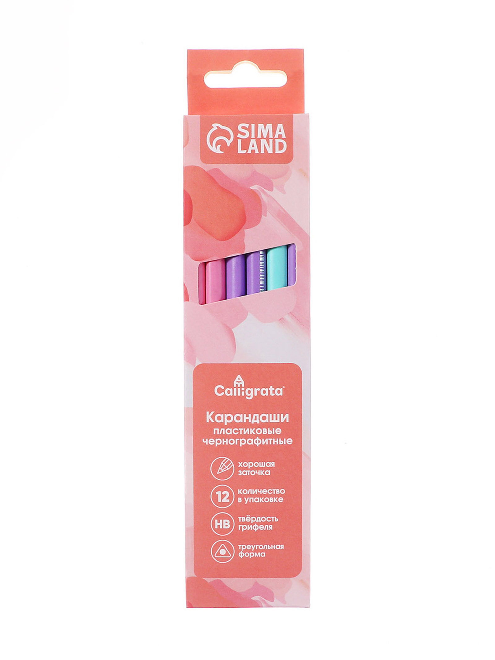 Тип: Для детского творчества, Для хобби и декорирования, Для школы и офиса Цвет: Жёлтый, Зелёный, Розовый, Фиолетовый Размер упаковки: 0.7 x 0.7 x 17.5 см. Количество цветов: 4 Вид упаковки: Коробка картонная Температурное ограничение: Нет Особенности цвета: Без особенностей Форма: Трёхгранные Реестр Минпромторга: Нет Набор: Нет Европодвес: Да Утолщённые: Нет Штрихкод на единице товара: Да В наборе, шт.: 12 Рисунок: Нет Твёрдость грифеля: HB (ТМ) Материал корпуса: Дерево Особенности: Классический tnved: 9609101000 Чернографитный карандаш Calligrata - универсального назначения (школа/дом/офис) эконом уровня. Изготовлены из высококачественного пластика. Имеют трехгранное сечение. Карандаши длиной 175 мм легко точатся и не крошатся. Обладают средней степенью твердости – HB. Эргономичный корпус выполнен в 4цветах пастельной гаммы (лаванда, фламинго, бирюзовый, желтый). Поставляются заточенными. Характеристики:
