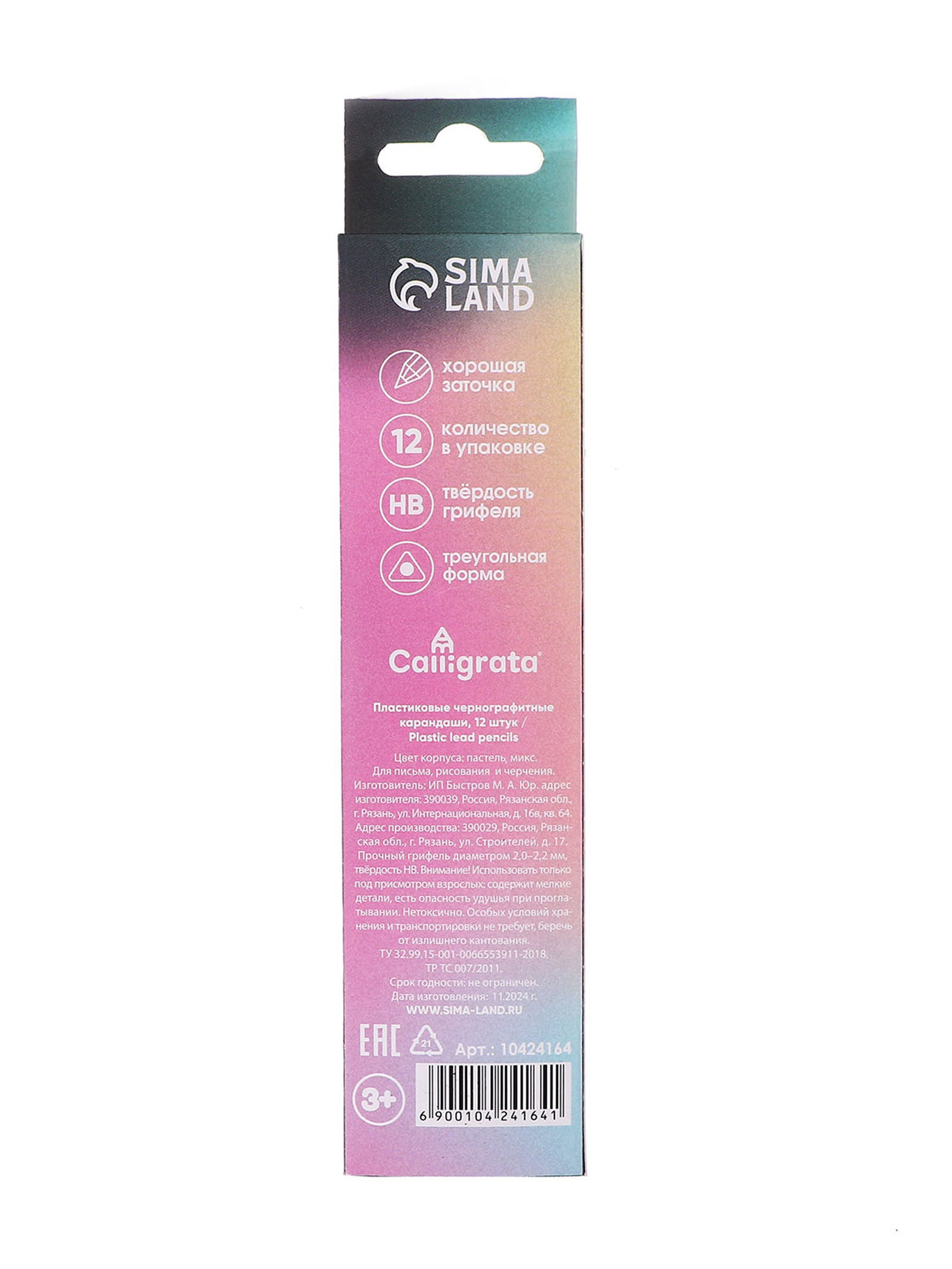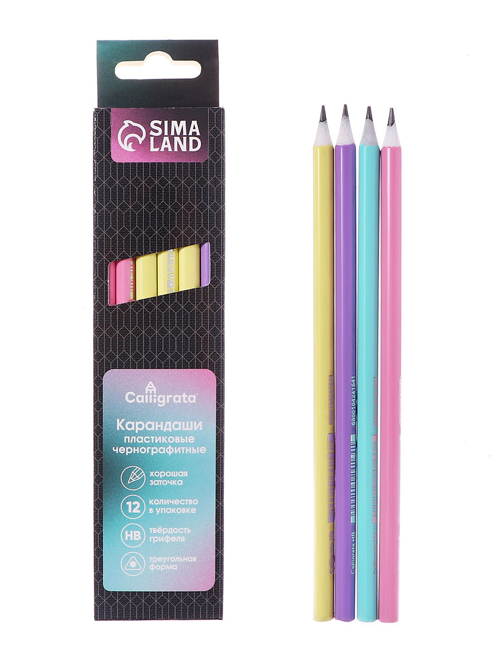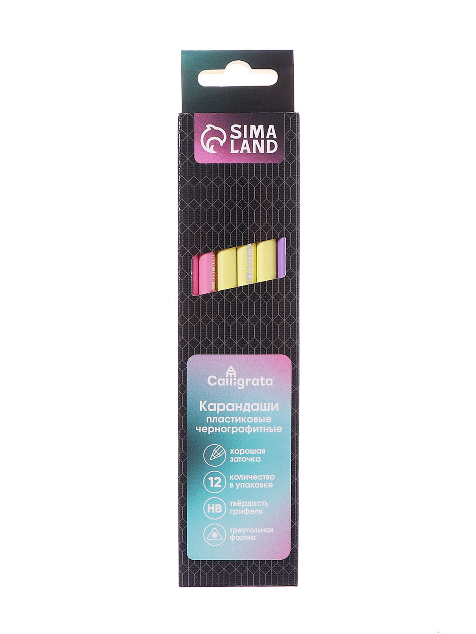 Тип: Для детского творчества, Для хобби и декорирования, Для школы и офиса Цвет: Жёлтый, Зелёный, Розовый, Фиолетовый Размер упаковки: 4.5 x 1.6 x 18 см. Форма: Трёхгранные Вид упаковки: Коробка картонная Особенности цвета: Без особенностей Реестр Минпромторга: Нет Набор: Да Утолщённые: Нет Европодвес: Да Количество цветов: 12 Температурное ограничение: Нет Штрихкод на единице товара: Да В наборе, шт.: 12 Рисунок: Нет Твёрдость грифеля: HB (ТМ) Материал корпуса: Дерево Особенности: Классический tnved: 9609909000 Набор чернографитных карандашей Calligrata - универсального назначения (школа/дом/офис) эконом уровня. Изготовлены из высококачественного пластика. Имеют трехгранное сечение. Карандаши длиной 175 мм легко точатся и не крошатся. Обладают средней степенью твердости – HB. Эргономичный корпус выполнен в 4цветах пастельной гаммы (лаванда, фламинго, бирюзовый, желтый). Поставляются заточенными. Характеристики: