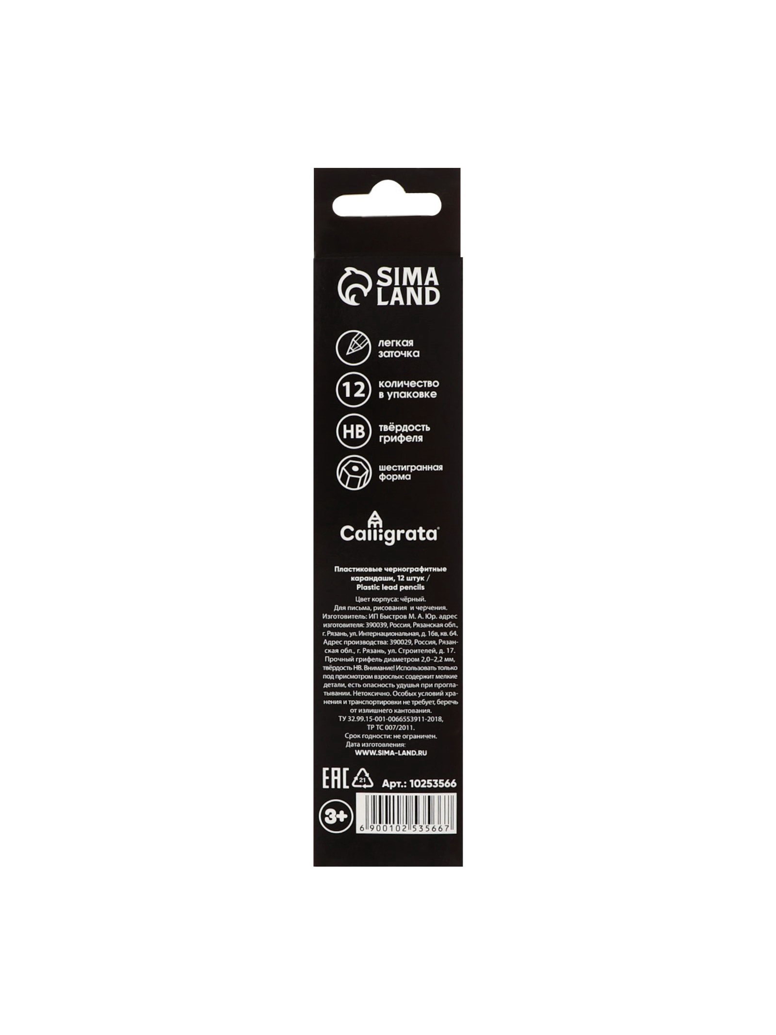 Набор карандашей чернографитных 12 штук, Classic, заточенные, пластик, трехгранные, черные, Calligrata, Россия