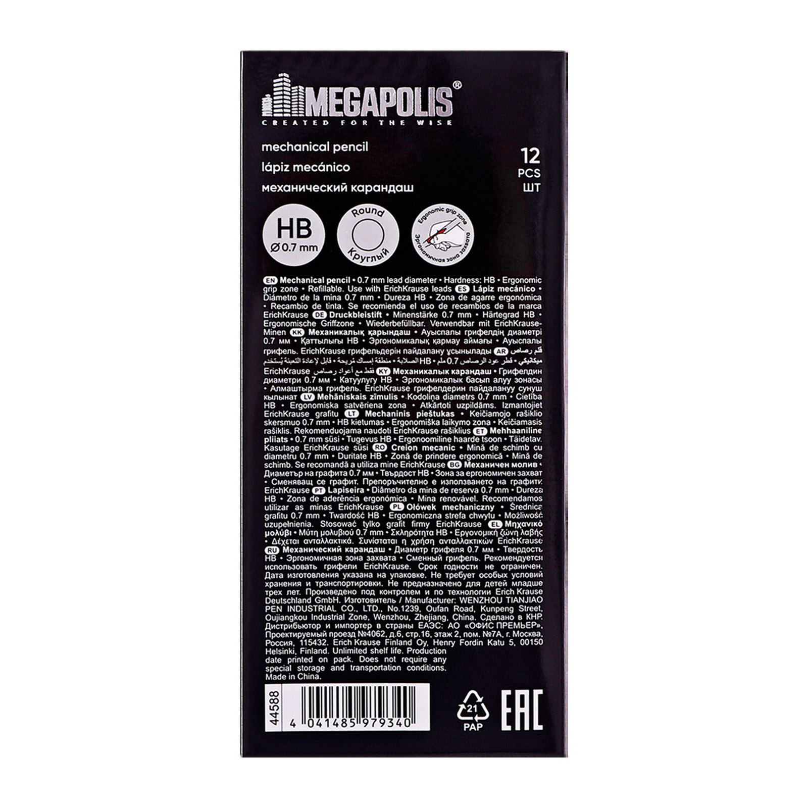 Модель MEGAPOLIS® Concept имеет узнаваемую запатентованную форму, обладает великолепной эргономикой и стала одним из бестселлеров в ассортименте механических карандашей ErichKrause® более чем в пятидесяти странах мира. | ||