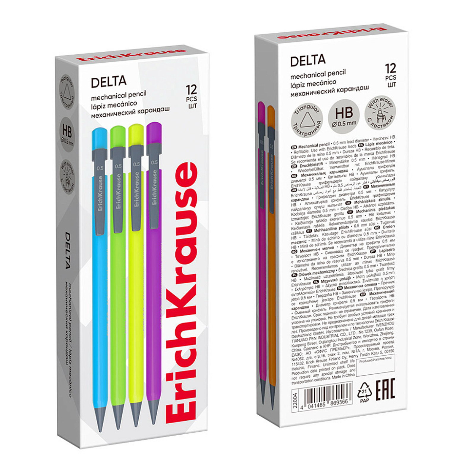 Карандаш механический "Delta", НВ, грифель d=0.5 мм, трёхгранный, в коробке, микс, 1x15x1 см., ErichKrause, Китай