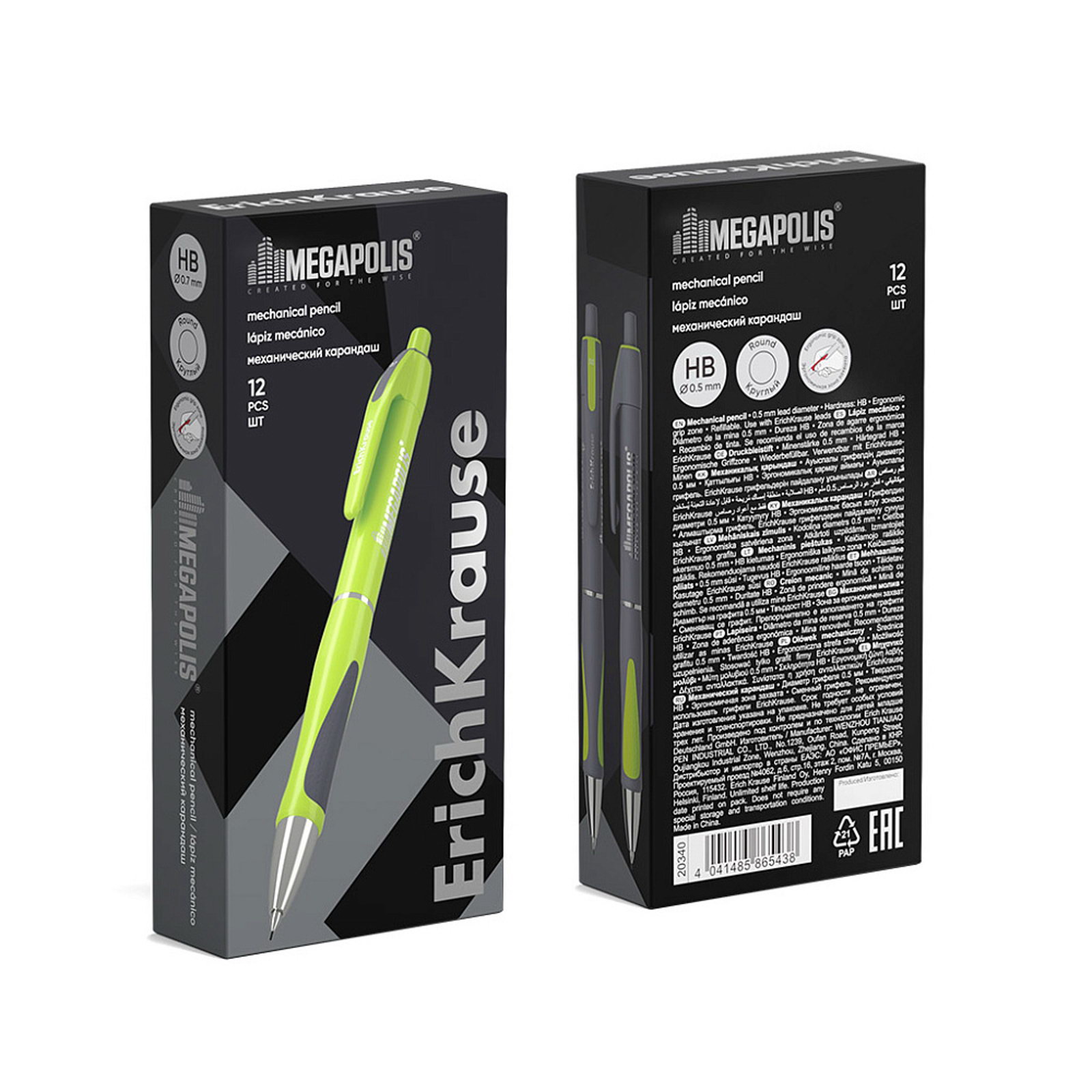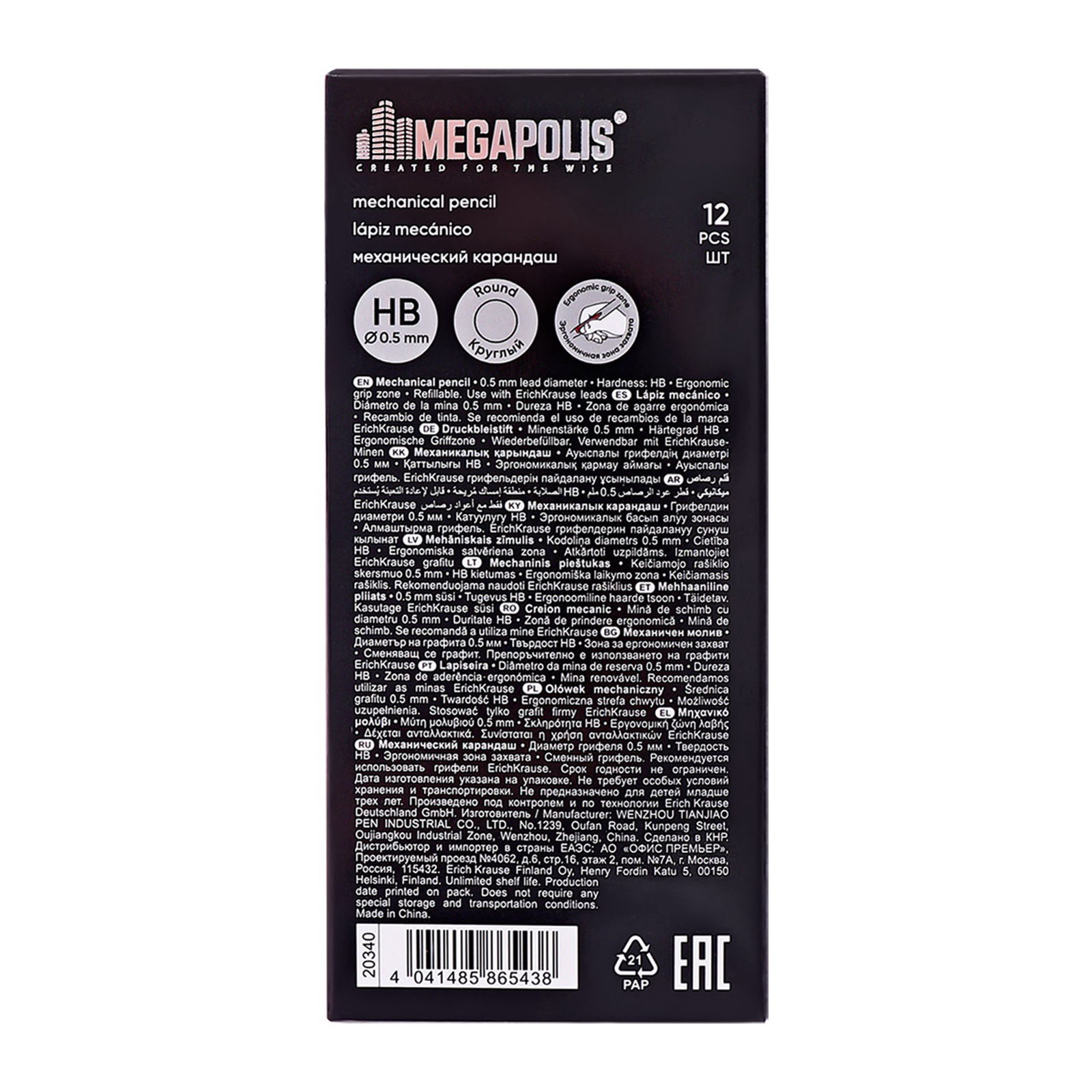 Карандаш механический "Megapolis Concept", 0.5 мм, НВ, резиновый упор, в коробке, 1x15x1 см., ErichKrause, Китай