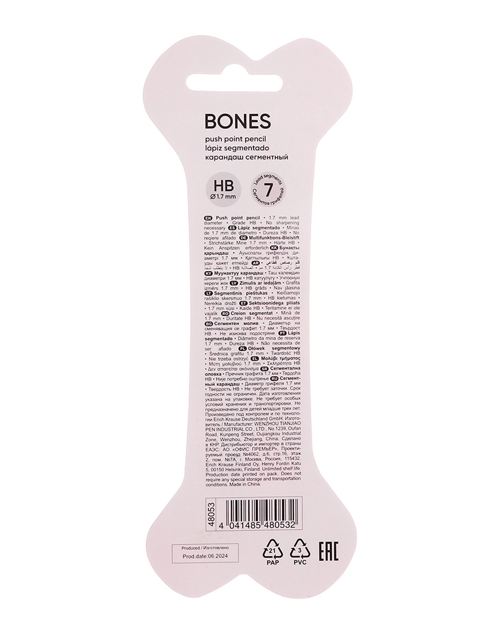 Карандаш сегментный "Bones", НВ, грифель d=1.7 мм, в блистере, 7.6x1.3x20.5 см., ErichKrause, Китай