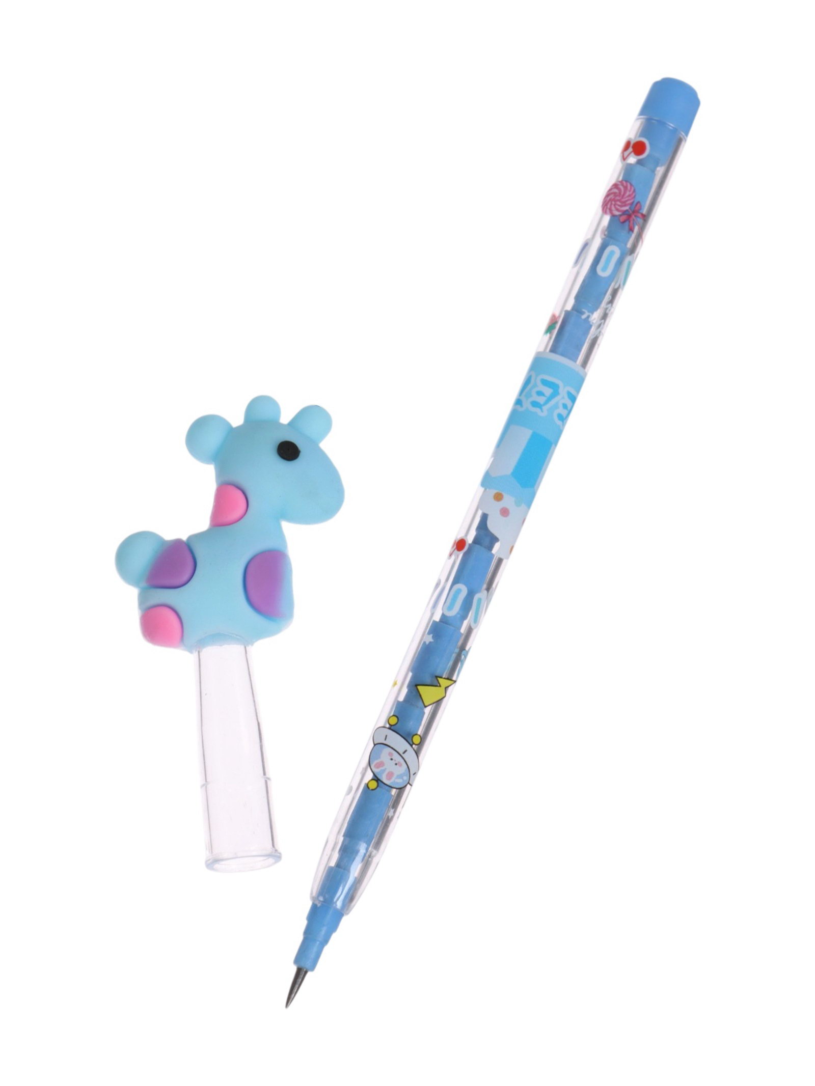 Карандаш-прикол секционный "Жираф", НВ, голубая фигурка, Китай