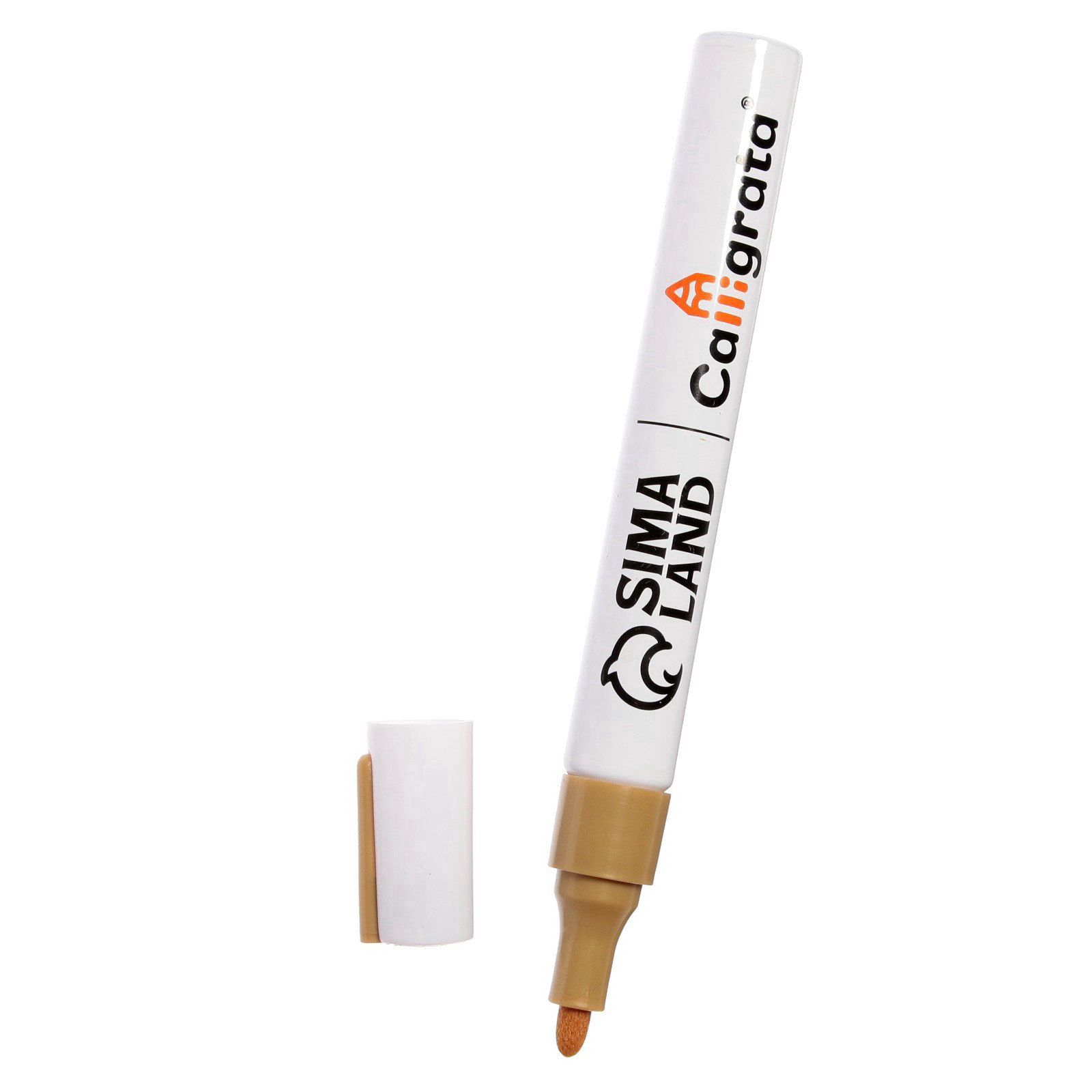 Маркер-краска, лаковый наконечник, пулевидный 4 мм, ширина линии 2.5 мм, золотая, цена за 1 штуку, 1.7x1.7x16 см., Китай