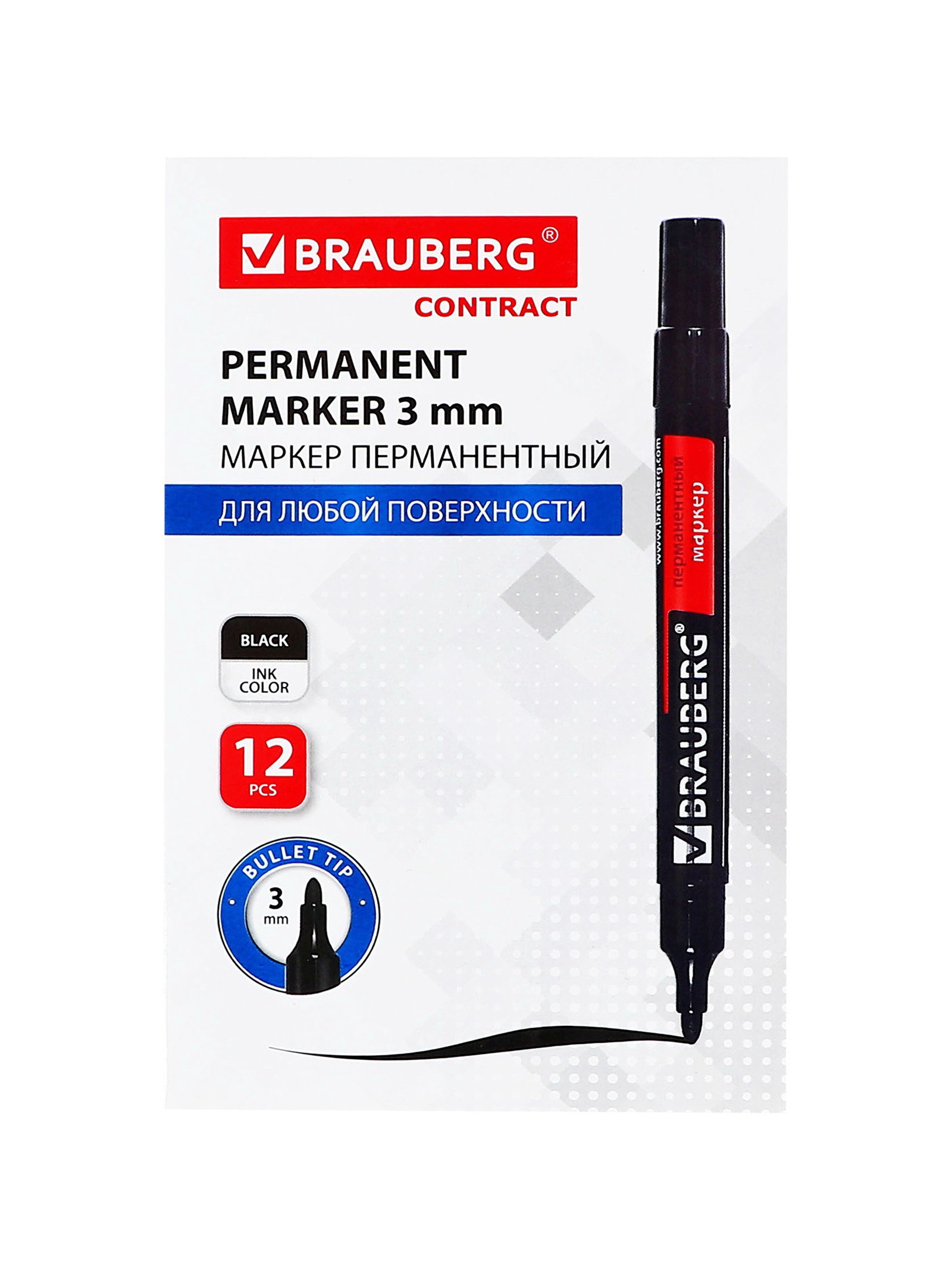 Маркер перманентный 3.0 мм Contract, чёрный, нестираемый, 14.2x1.7x1.7 см., Brauberg, Китай