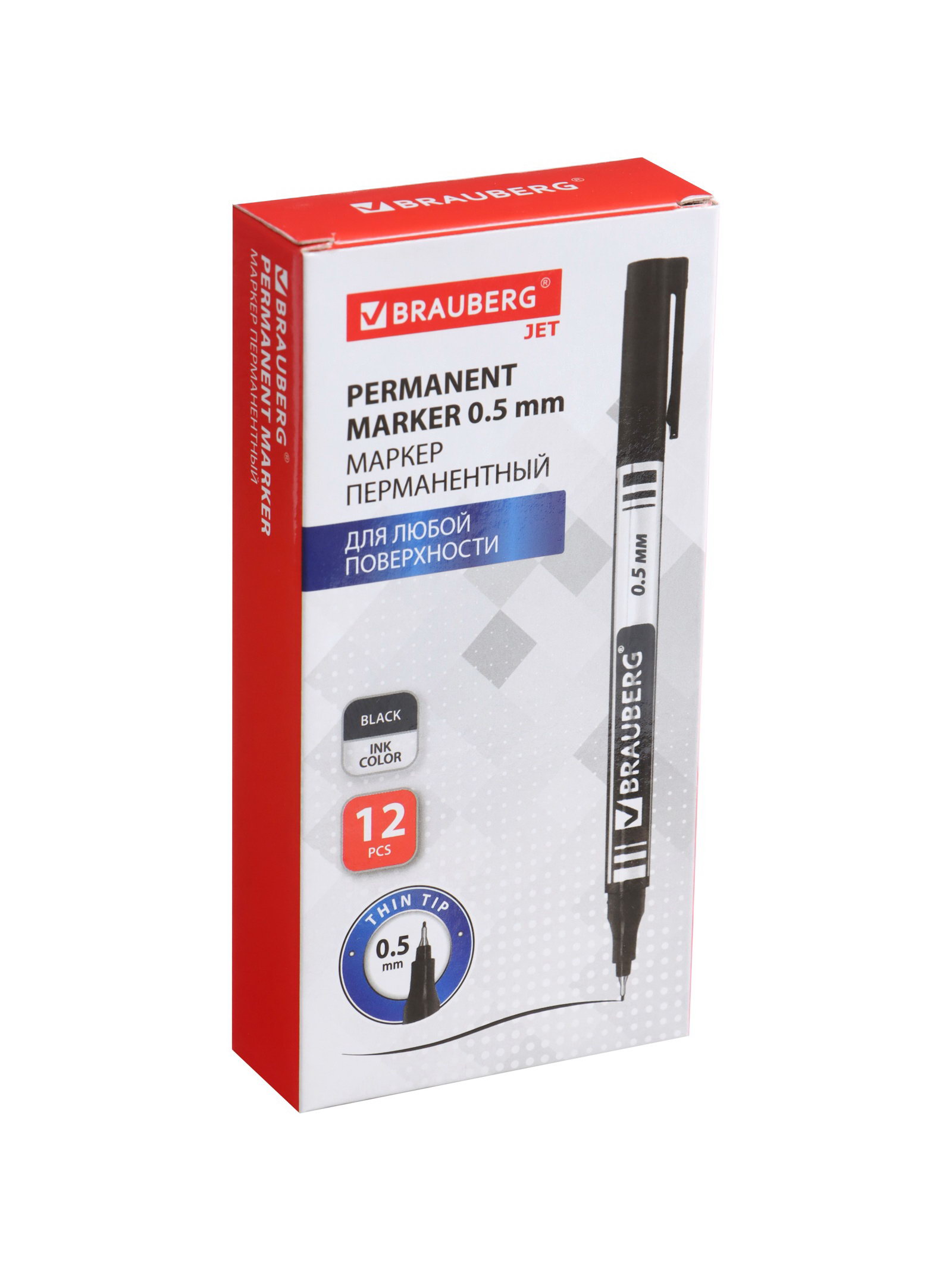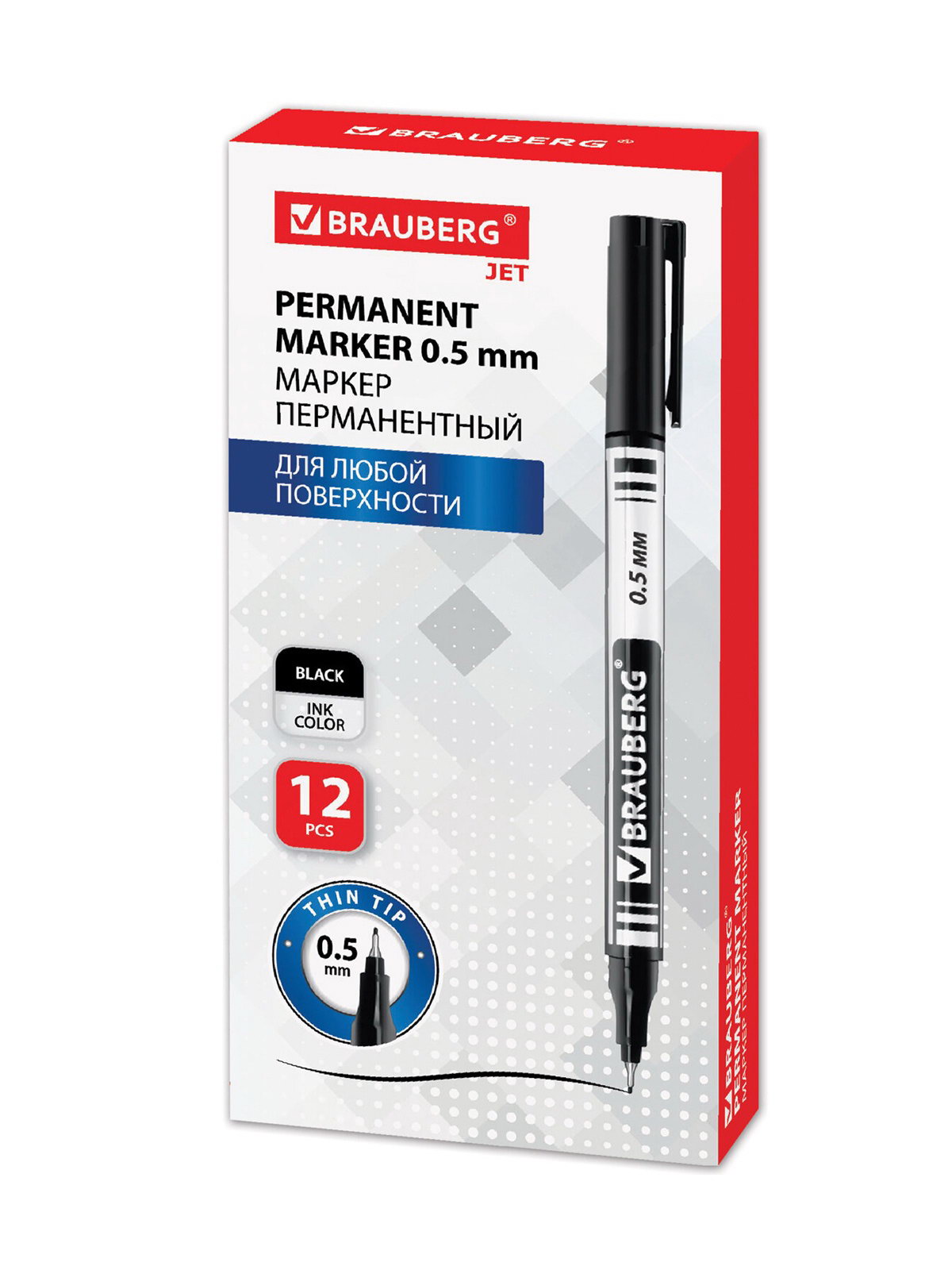 Маркер перманентный. Jet, чёрный, узел 0.5 мм, 1.4x0.9x14 см., Brauberg, Китай