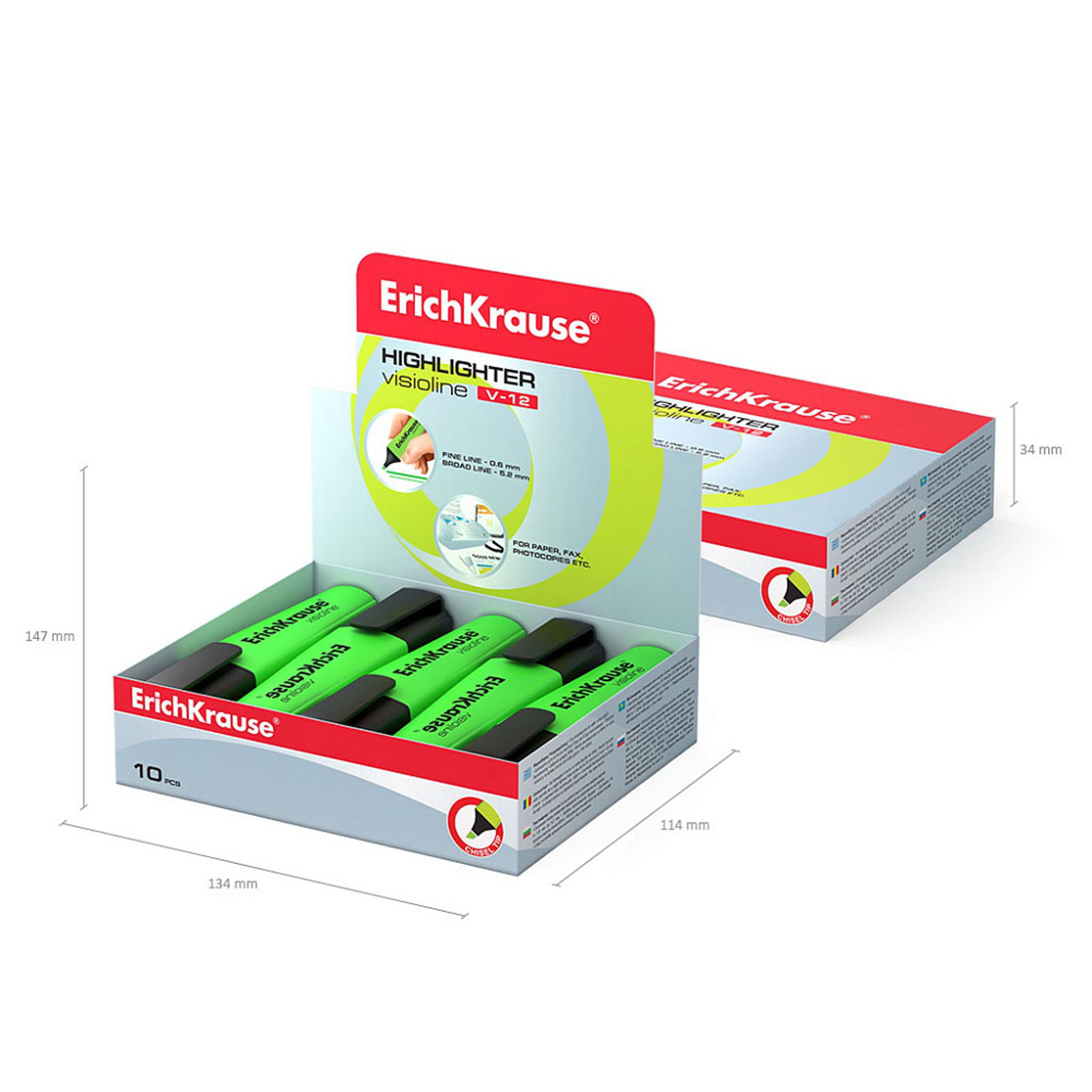 Маркер текстовыделитель V-12, 0.6-5.2 мм, флуоресцентные чернила на водной основе, зелёный, 1.6x11.3x2.7 см., ErichKrause, Малайзия