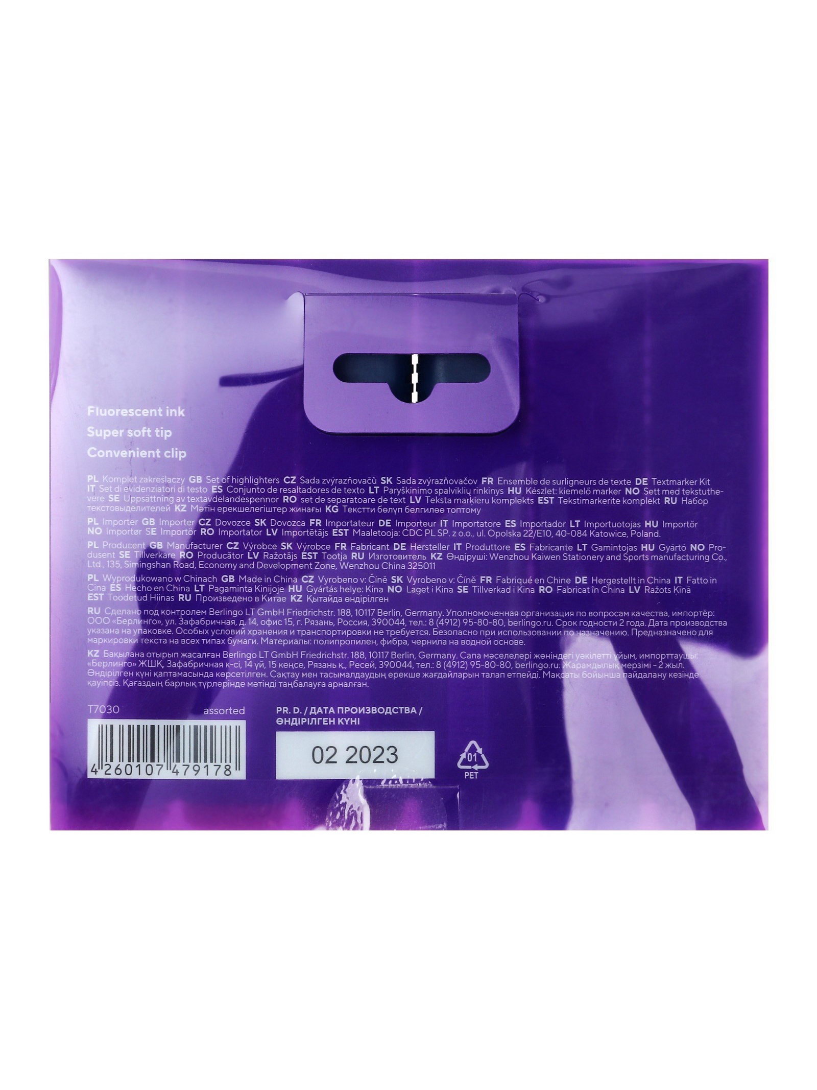 Набор маркеров-текстовыделителей, узел 5.0 мм, 6 цветов, европодвес, 13x15.5x1.5 см., Berlingo, Китай
