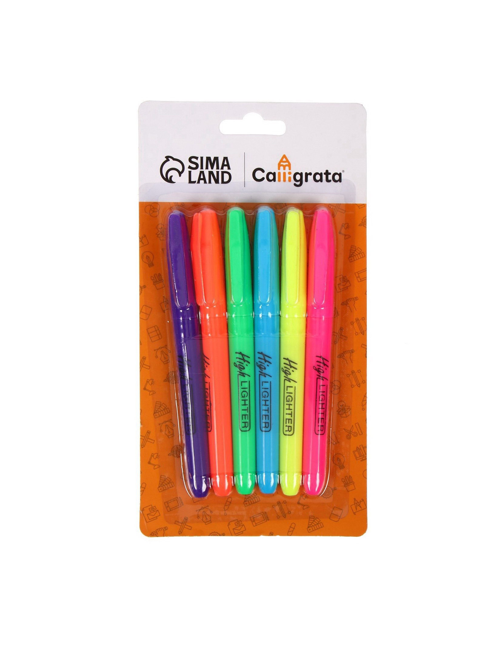Набор маркеров текстовыделителей, наконечники скошенные, 4 мм, 6 цветов, 11x21x1.5 см., Calligrata, Китай