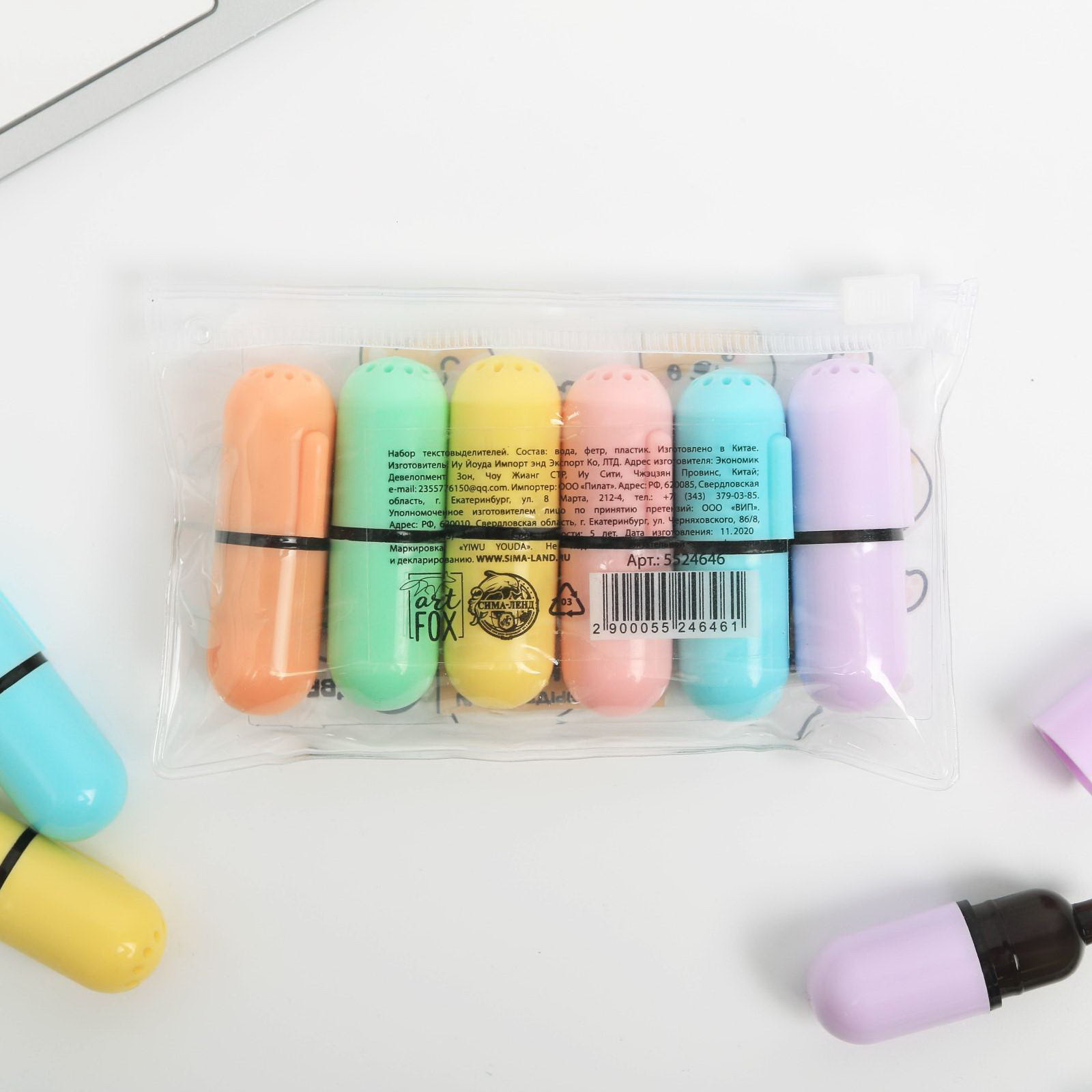 Текстовыделитель, набор из 6 шт., мини "Пилюли милоты", 6.9x11.5x2 см., ArtFox, Китай