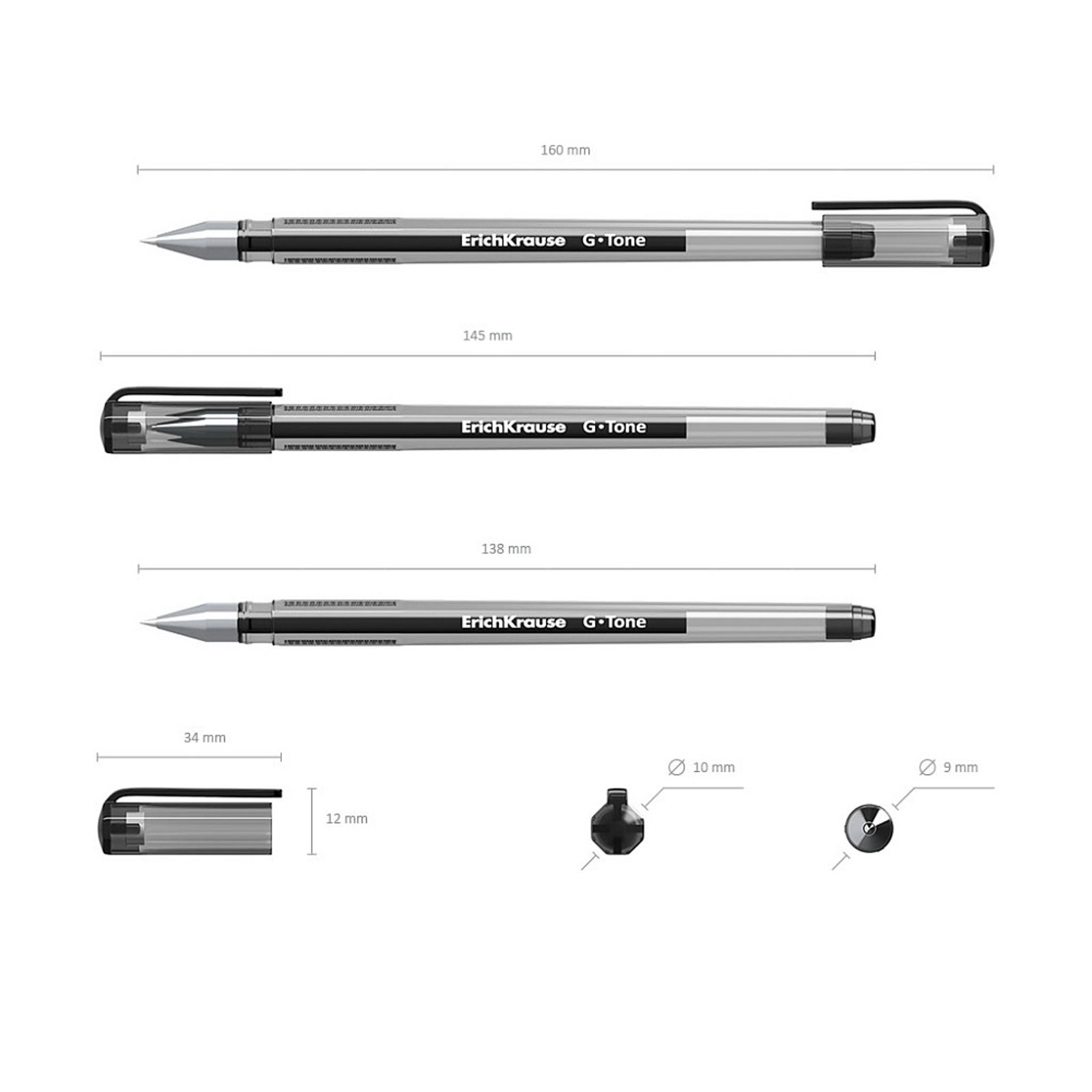 Ручка гелевая G-Tone, узел 0.5 мм, чернила чёрные, длина линии письма 500 метров, 1x14.5x1.3 см., ErichKrause, Китай