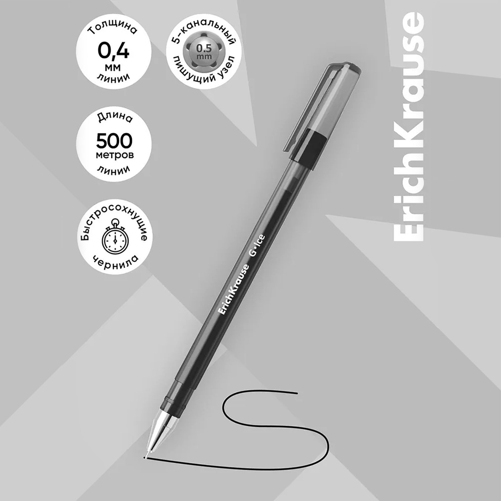 Ручка гелевая G-Ice, узел 0.5 мм, чернила чёрные, длина линии письма 500 метров, ErichKrause, Китай