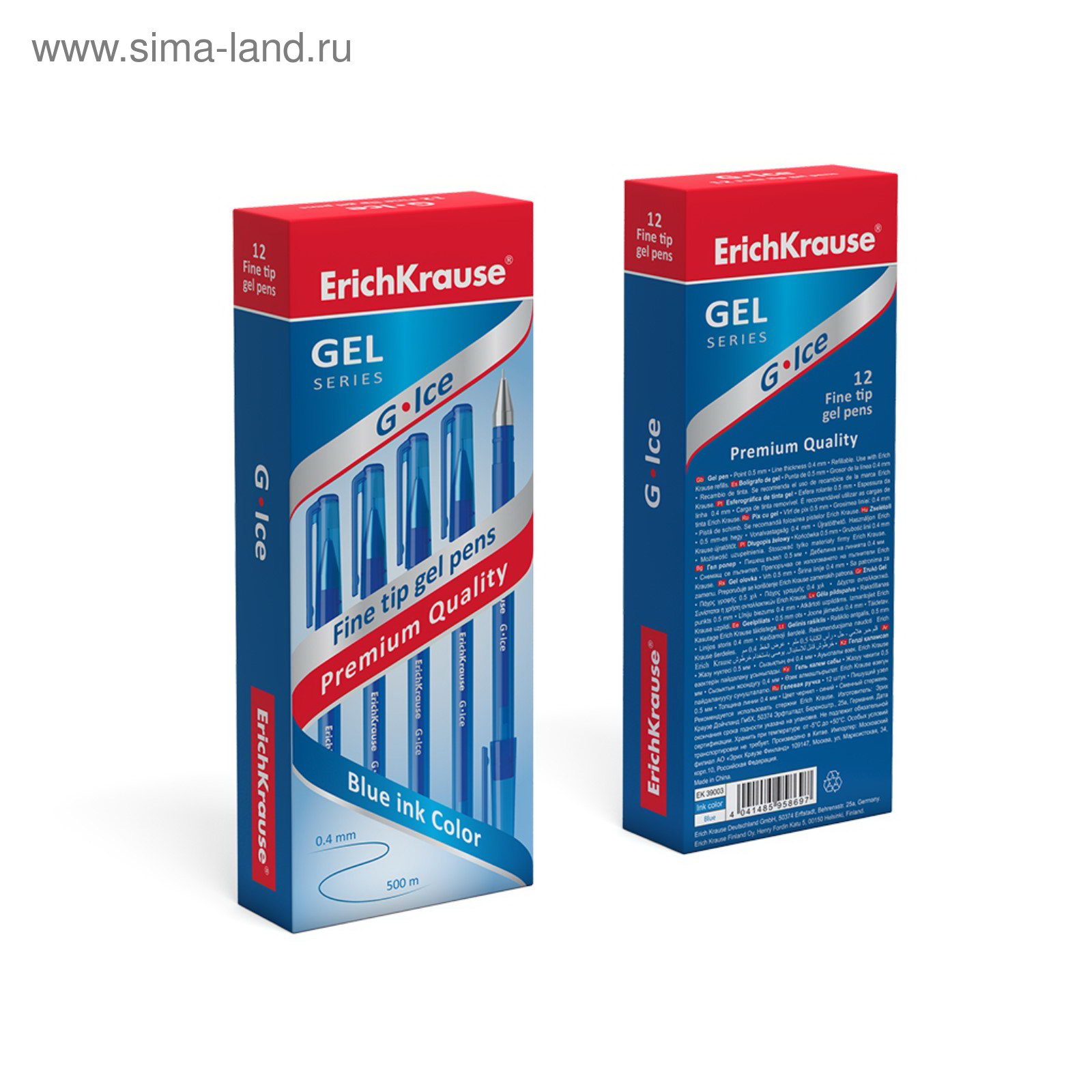 Ручка гелевая G-Ice, узел 0.5 мм, чернила синие, длина линии письма 500 метров, ErichKrause, Китай