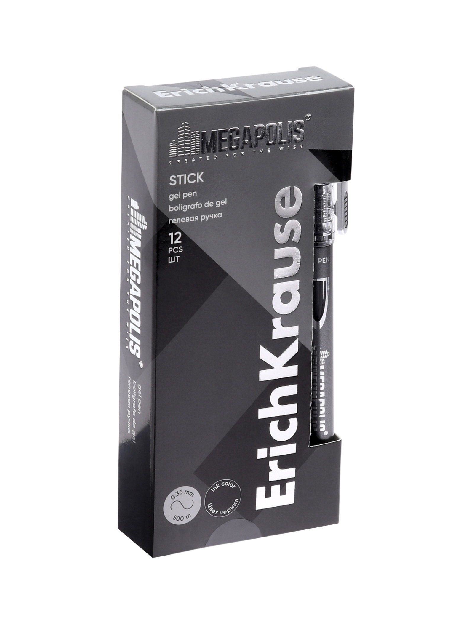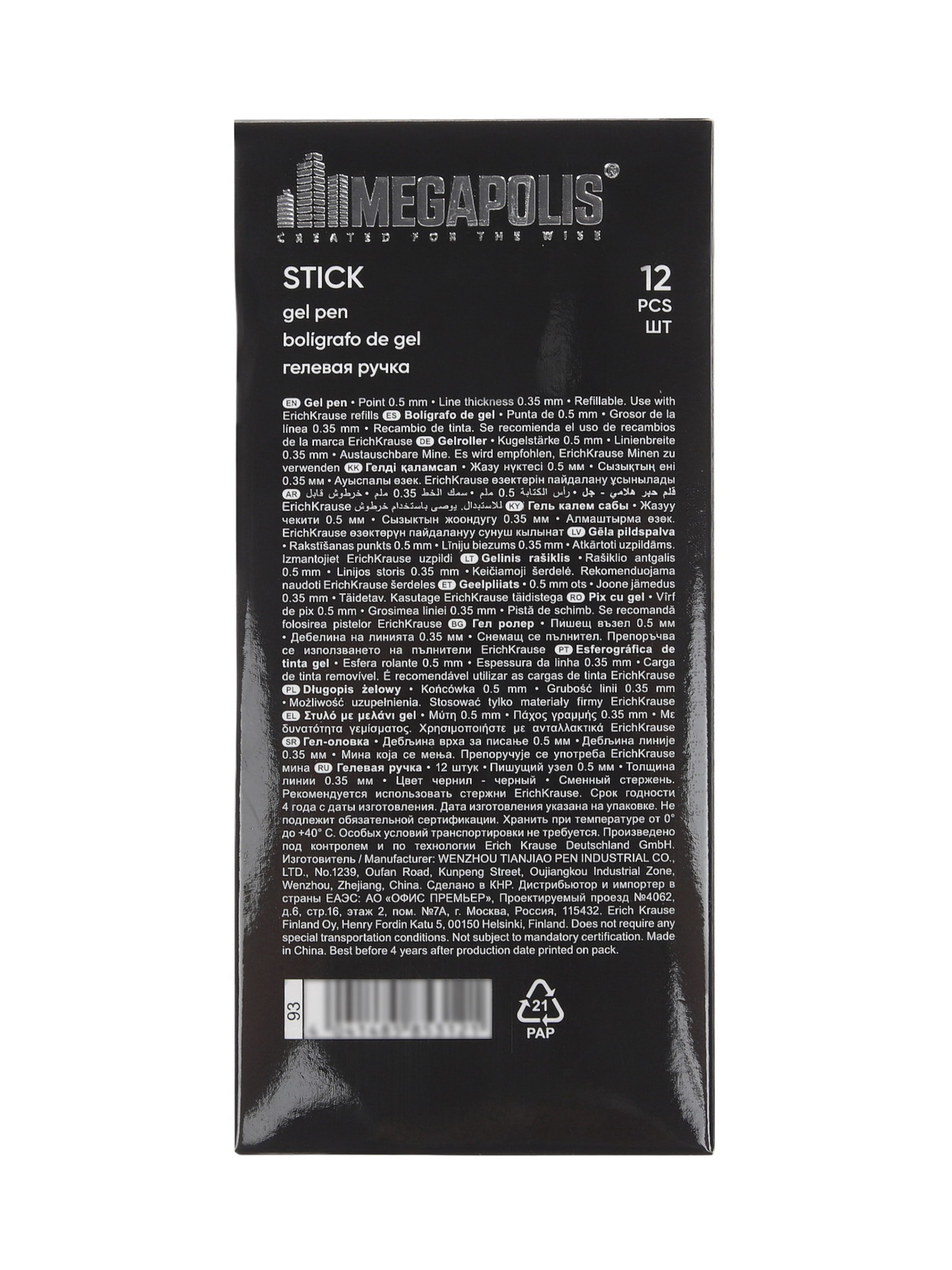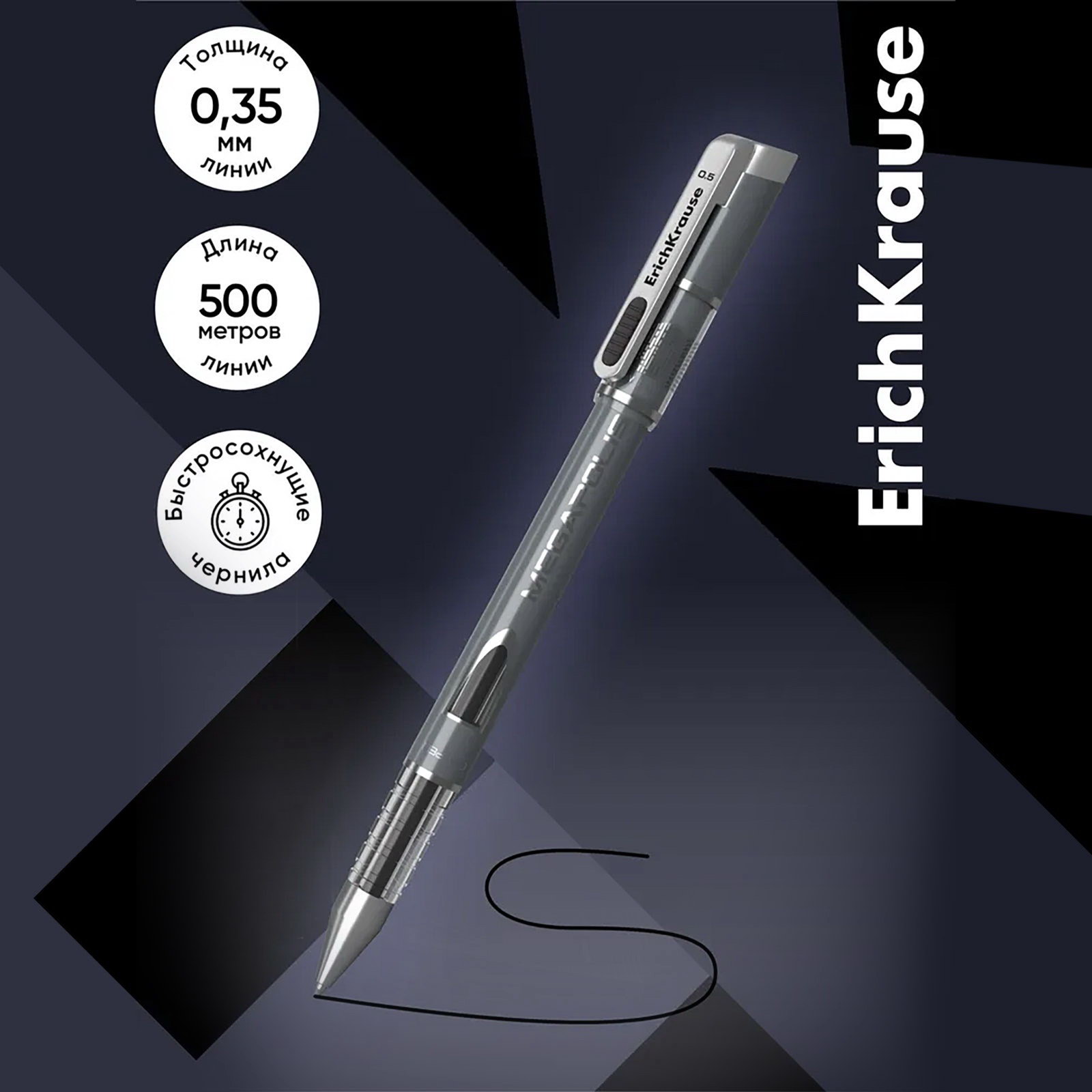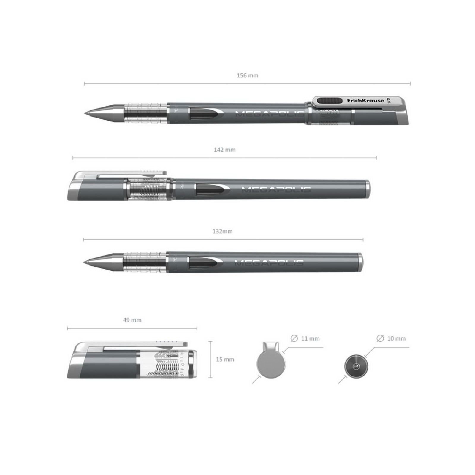 Ручка гелевая Megapolis Gel, чернила чёрные, узел 0.5 мм, длина линии письма 500 метров, 1.5x15x1.5 см., ErichKrause, Китай