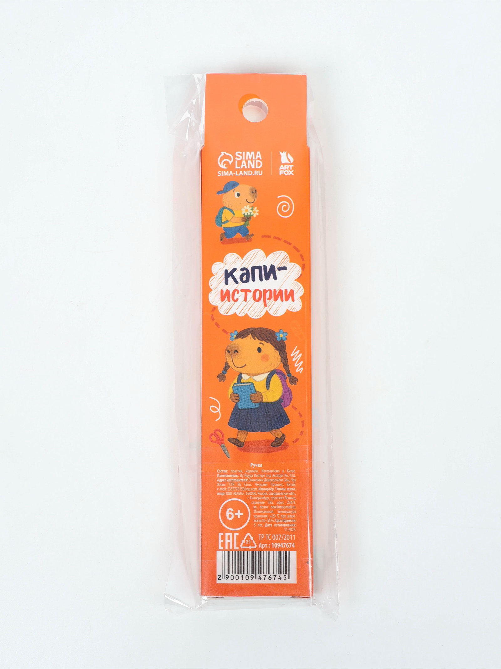 Ручка гелевая, черная паста, 2 шт. "Капи ручки", 3.5x17x1.5 см., ArtFox, Китай