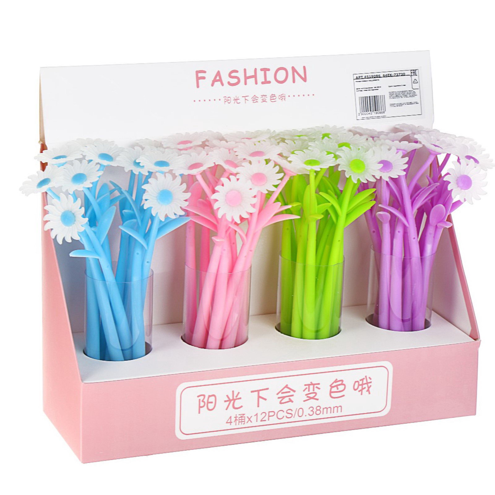 Ручка гелевая "Ромашки", прикол, меняет цвет при ультрафиолете, МИКС, Calligrata, Китай