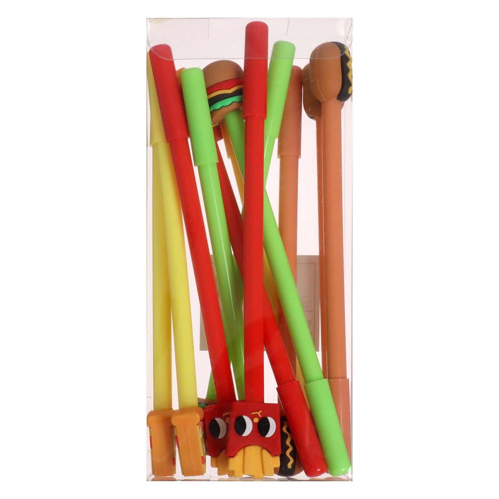 Размер упаковки: 2.5 x 2 x 17.5 см. Штрихкод на единице товара: Нет Набор: Да В наборе, шт.: 1 Шоубокс: Нет Наличие грипа: Нет tnved: 9608101000 Диаметр пишущего узла, мм: 0.5 Тип: Неавтоматическая ручка Цвет: МИКС Вид упаковки: Коробка пластиковая Рисунок: Да Количество цветов: 4 Цвет стержня: Синий Вид ручки: Гелевая Стержень заменяемый: Да Европодвес: Нет Этот набор гелевых ручек с аппетитными принтами фастфуда создаёт игривое настроение во время письма. Синие чернила подходят для повседневных задач, а сменные стержни делают набор практичным приобретением для учёбы или работы. Особенности
