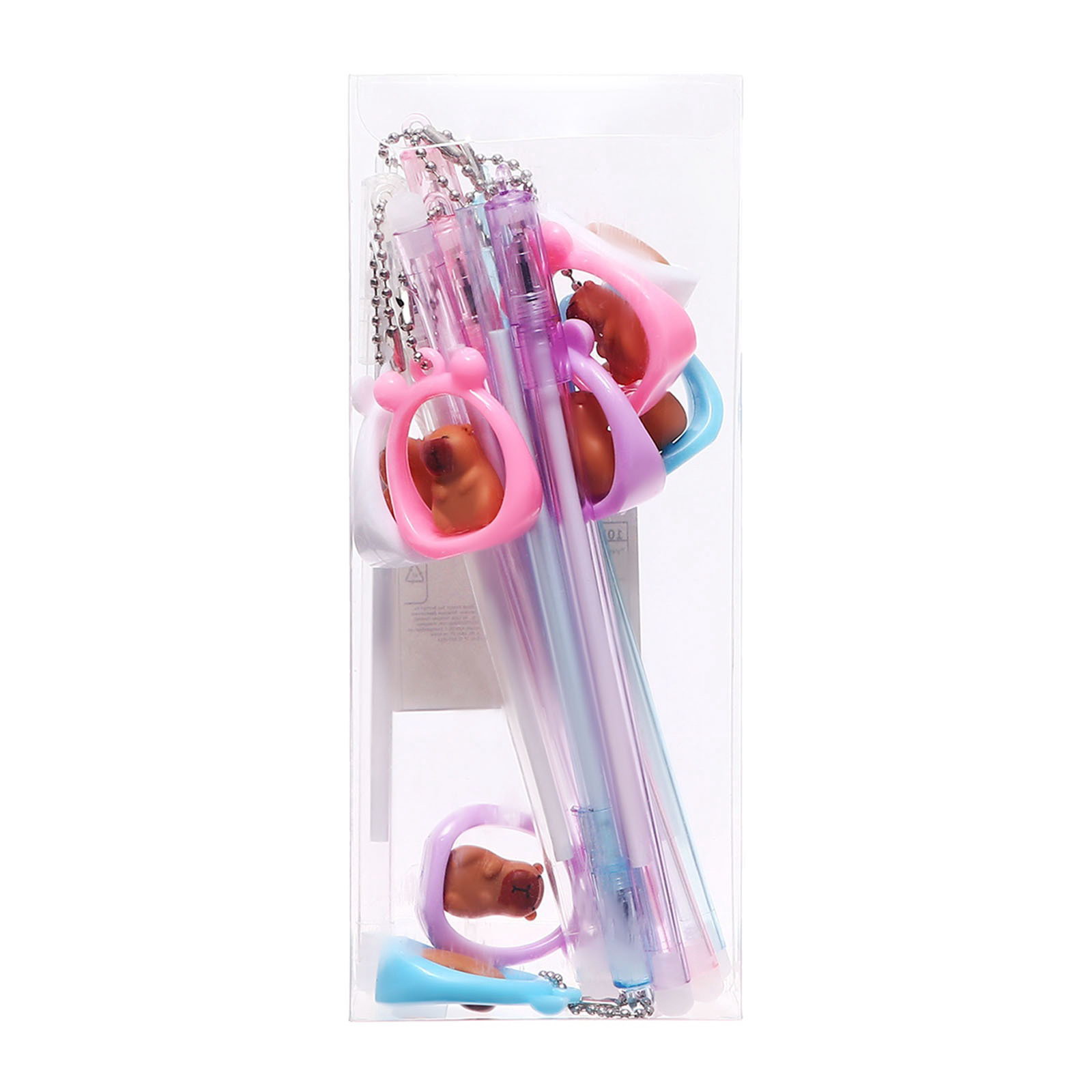 Размер упаковки: 3.5 x 2.5 x 16.5 см. Вид ручки: Гелевая Штрихкод на единице товара: Нет Набор: Нет Европодвес: Нет Стержень заменяемый: Да tnved: 9608101000 Наличие грипа: Нет Шоубокс: Нет В наборе, шт.: 1 Диаметр пишущего узла, мм: 0.5 Вид упаковки: Пакет Тип: Неавтоматическая ручка Цвет: МИКС Количество цветов: 4 Рисунок: Да Цвет стержня: Синий Досуг с капибарой никогда не был таким увлекательным! Эта гелевая ручка обрадует как любителей животных, так и сторонников уникальных канцелярских товаров. Изготовленная из качественного пластика и украшенная рисунком, она станет неотъемлемым спутником в рабочей рутине. Особенности пишущего инструмента