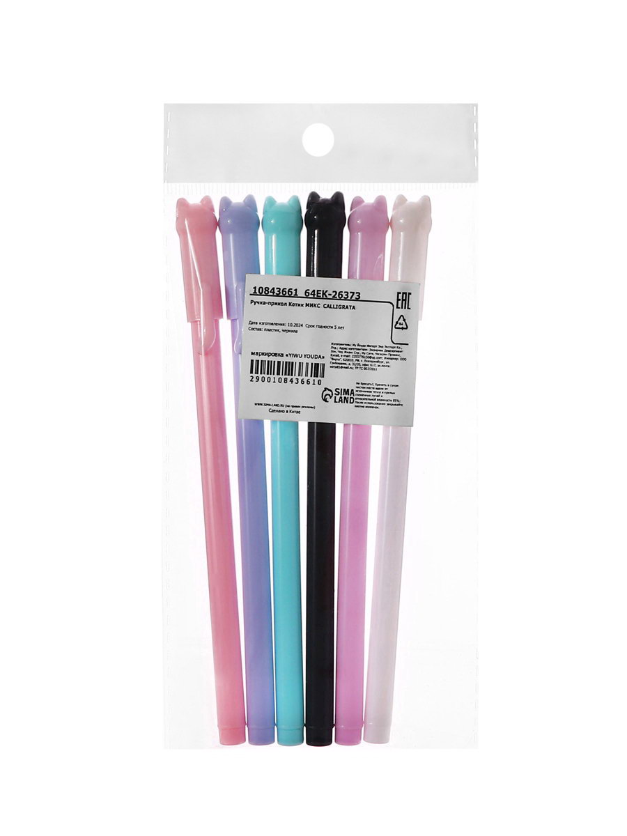 Размер упаковки: 1.2 x 1.2 x 15.5 см. Вид ручки: Гелевая Стержень заменяемый: Нет Европодвес: Да Цвет стержня: Чёрный Наличие грипа: Нет В наборе, шт.: 1 Шоубокс: Нет Штрихкод на единице товара: Да tnved: 9608101000 Набор: Нет Диаметр пишущего узла, мм: 0.5 Вид упаковки: Пакет Рисунок: Да Тип: Неавтоматическая ручка Цвет: МИКС Количество цветов: 6 Гелевая ручка с рисунком котика создает настроение во время письма. Шесть вариантов дизайна с милыми животными позволяют выбрать подходящий характер для ваших ежедневных записей. Конструктивные особенности