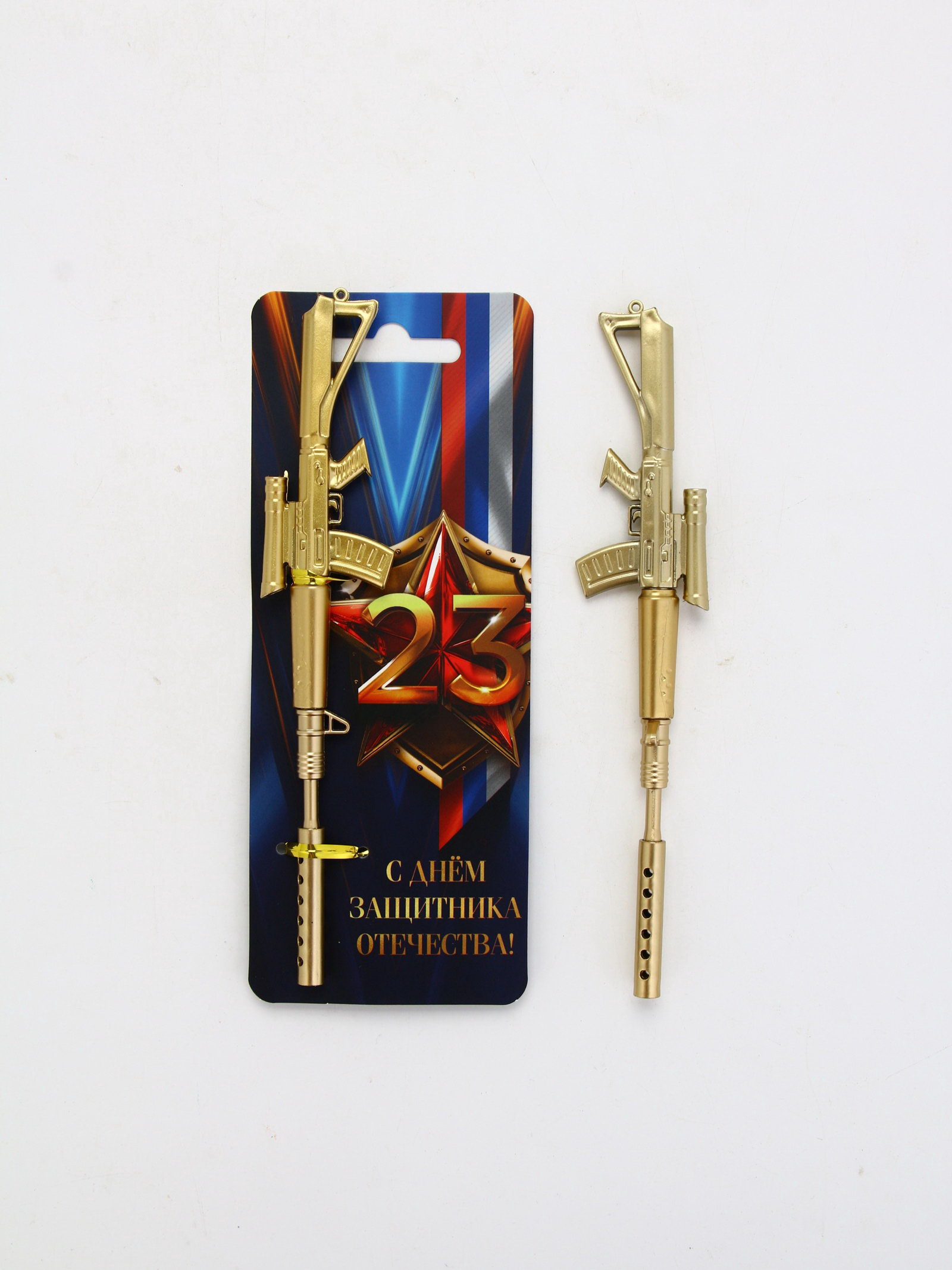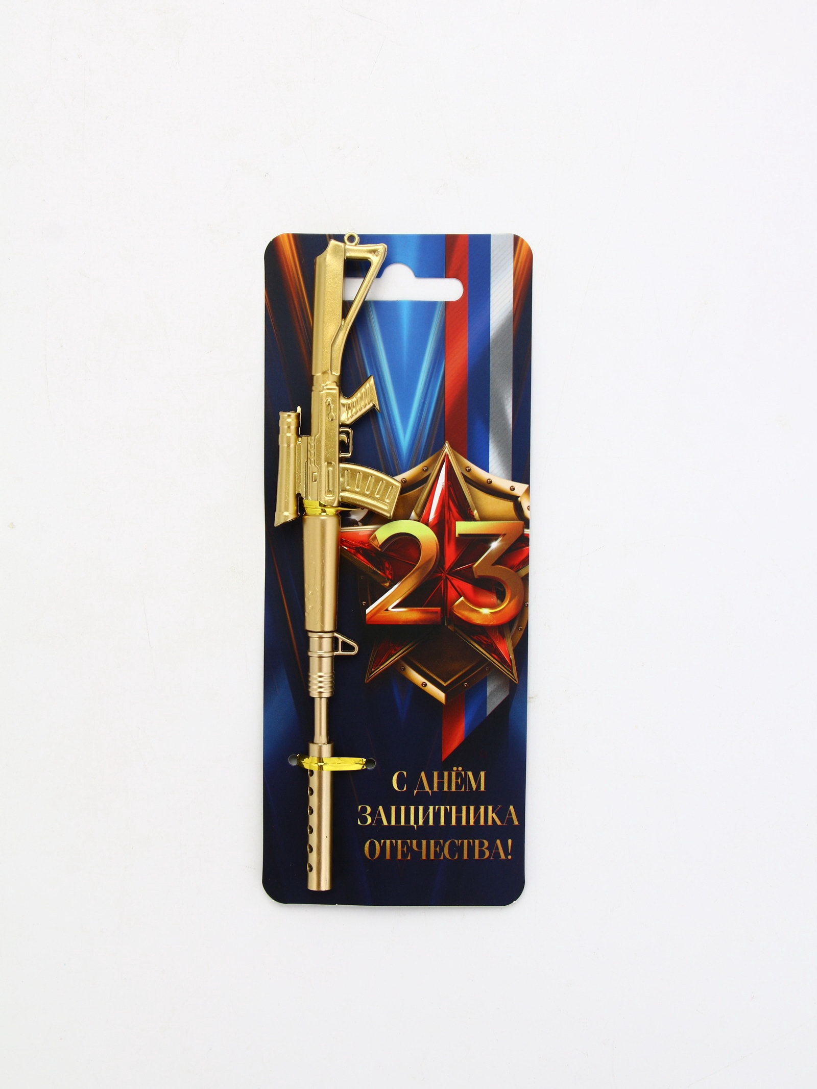 Ручка-винтовка гелевая, чёрная паста, пластик, на подложке "Защитник отечества. 23 февраля", 7.5x19x1 см., ArtFox, Китай