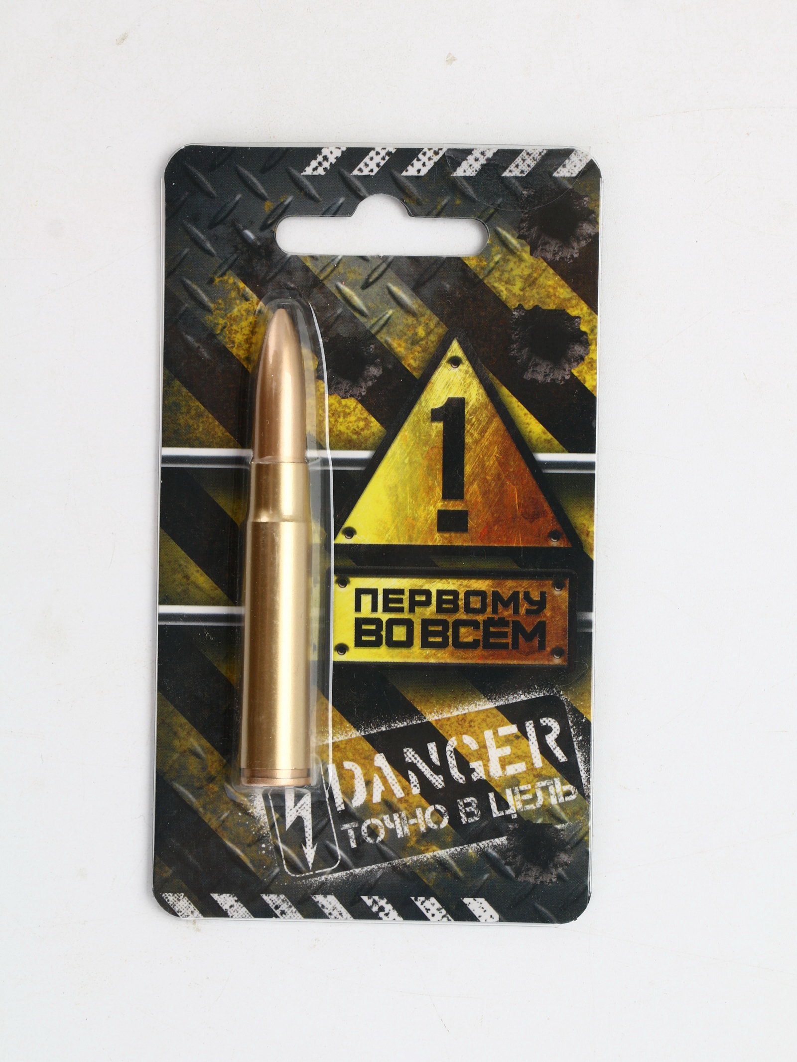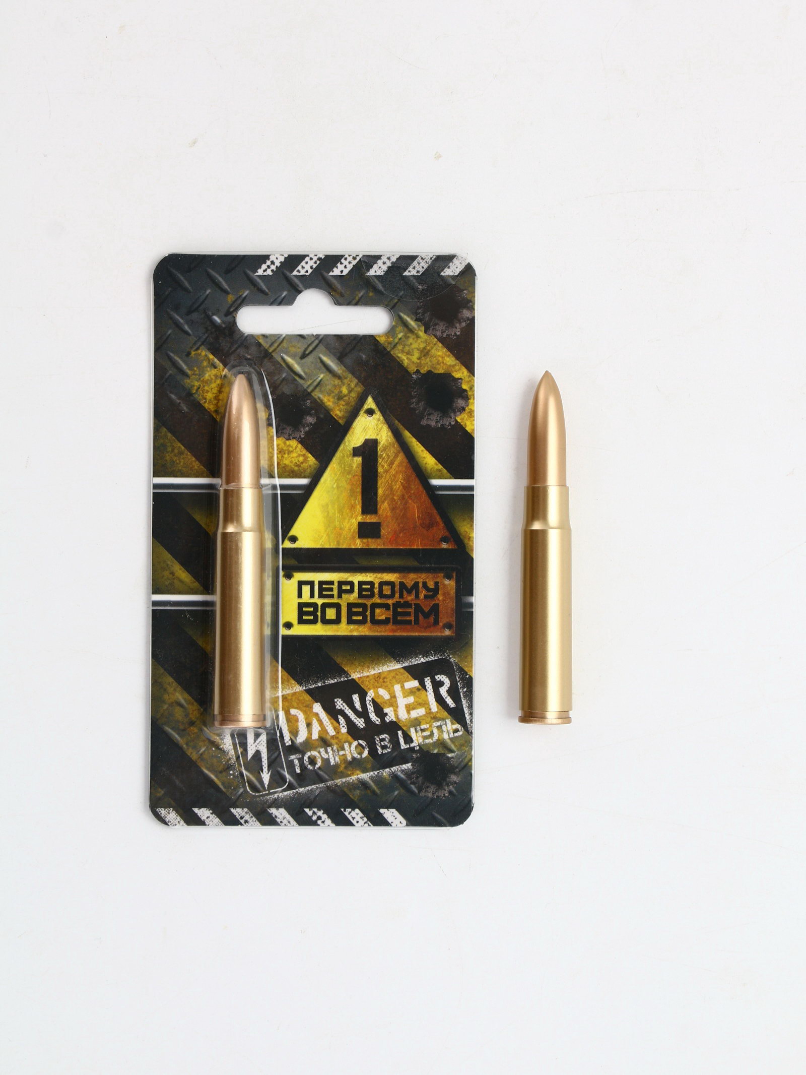Ручка шариковая, синяя паста, пластик, пуля, на подложке "Первому во всём", 7.5x13.3x1 см., ArtFox, Китай