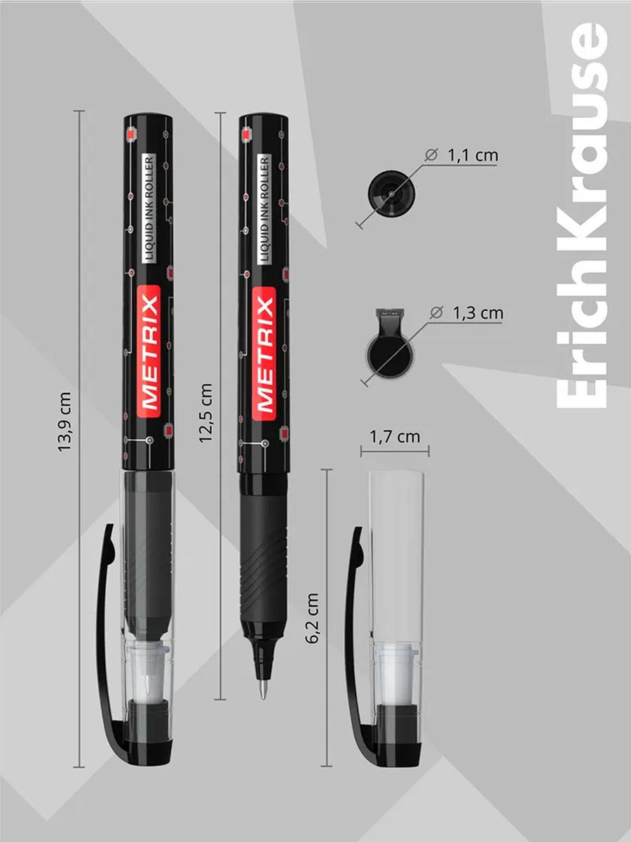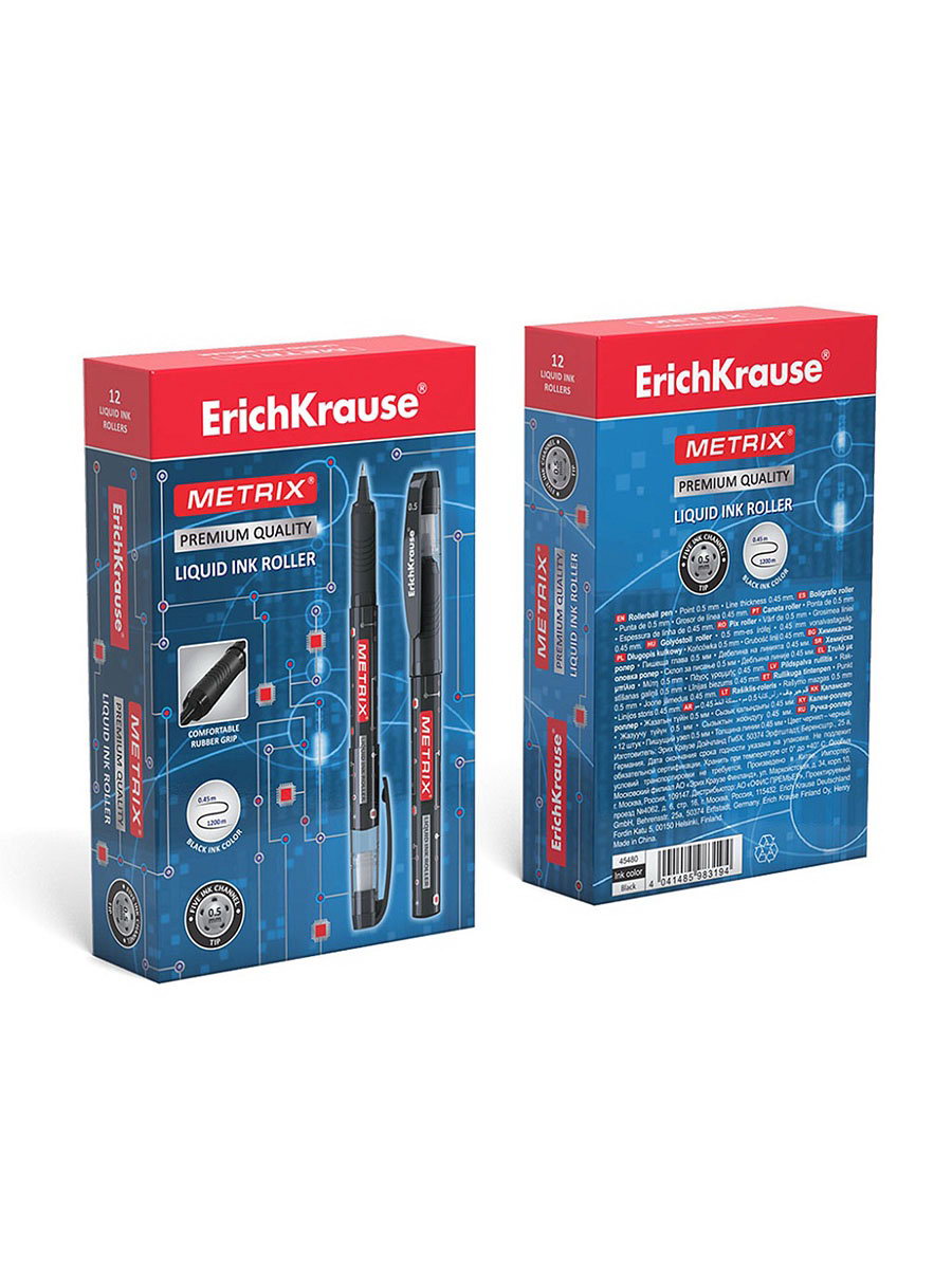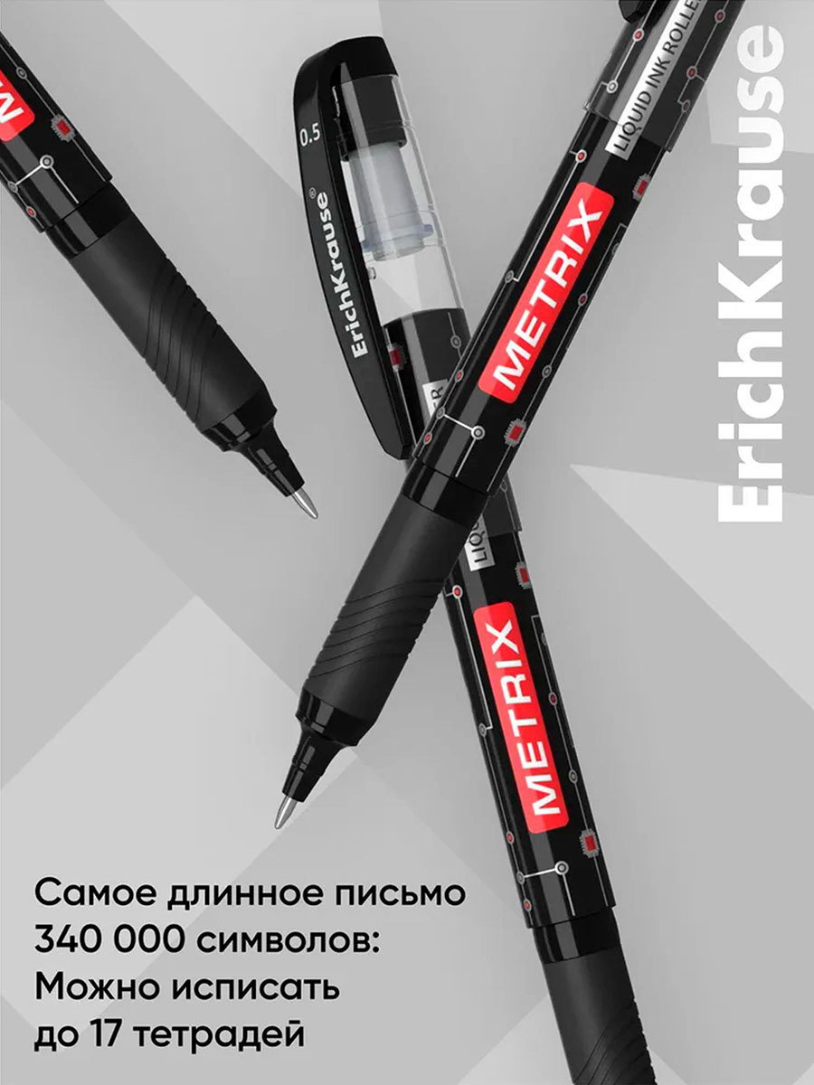 Ручка - роллер Erich Krause METRIX, узел 0.5, чернила чёрные, длина письма 1200 метров, ErichKrause, Китай