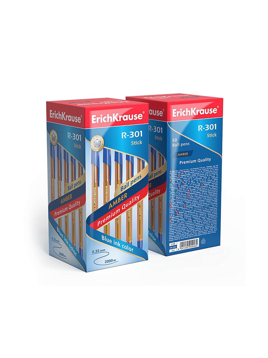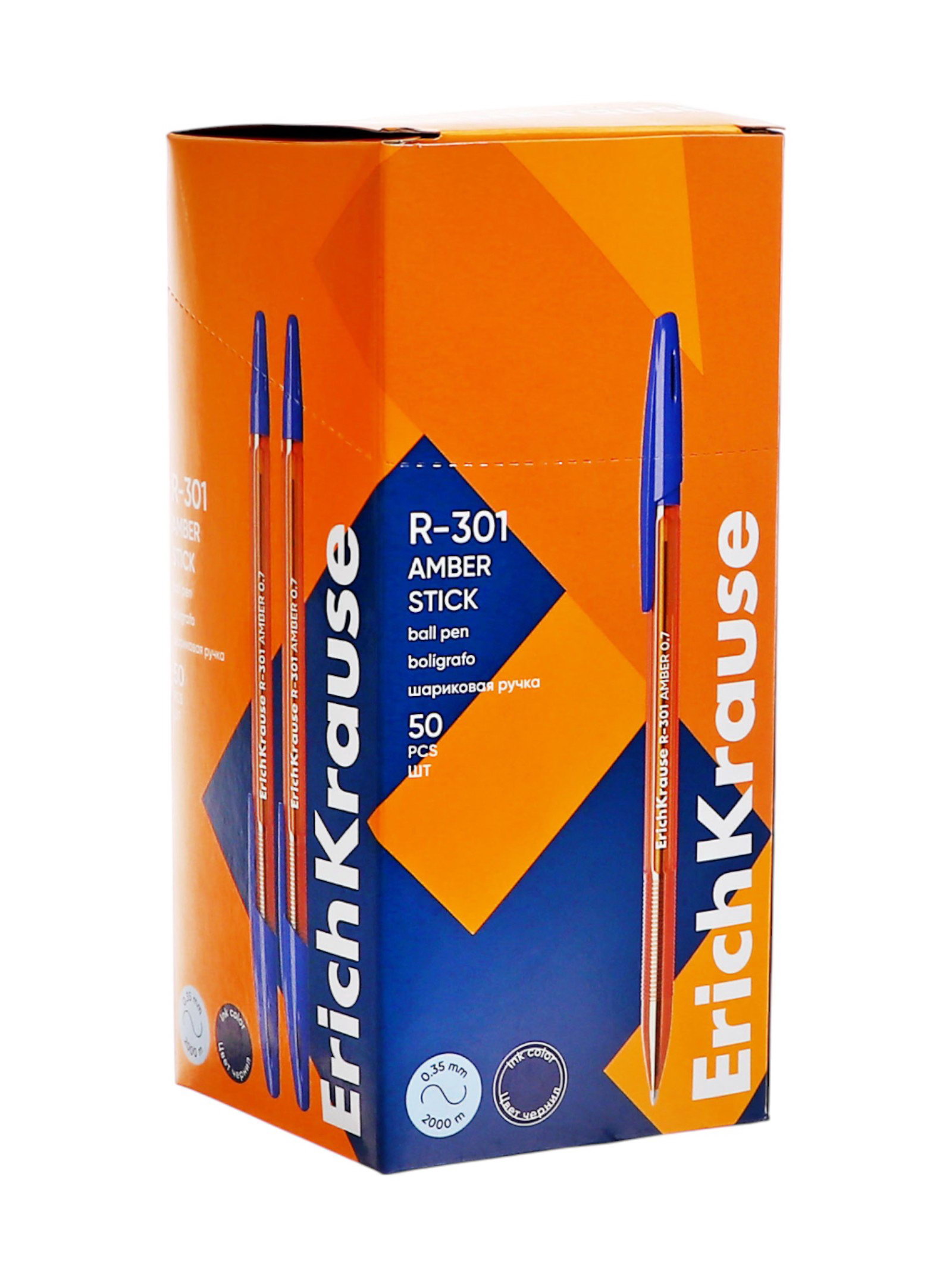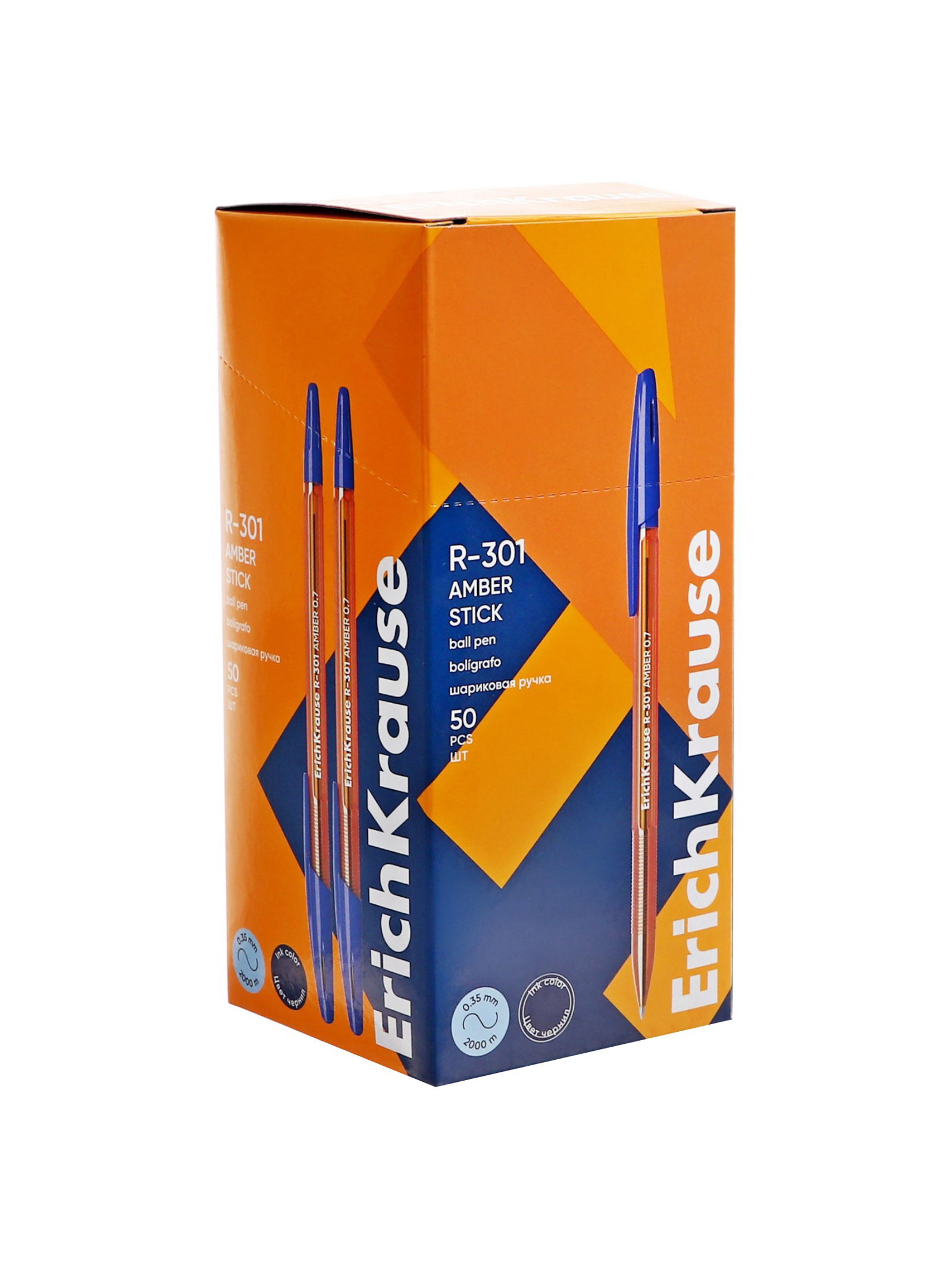 Ручка шариковая R-301 Amber Stick, узел 1.0 мм, чернила синие, длина линии письма 1000 метров, 1x0.4x16 см., ErichKrause, Китай