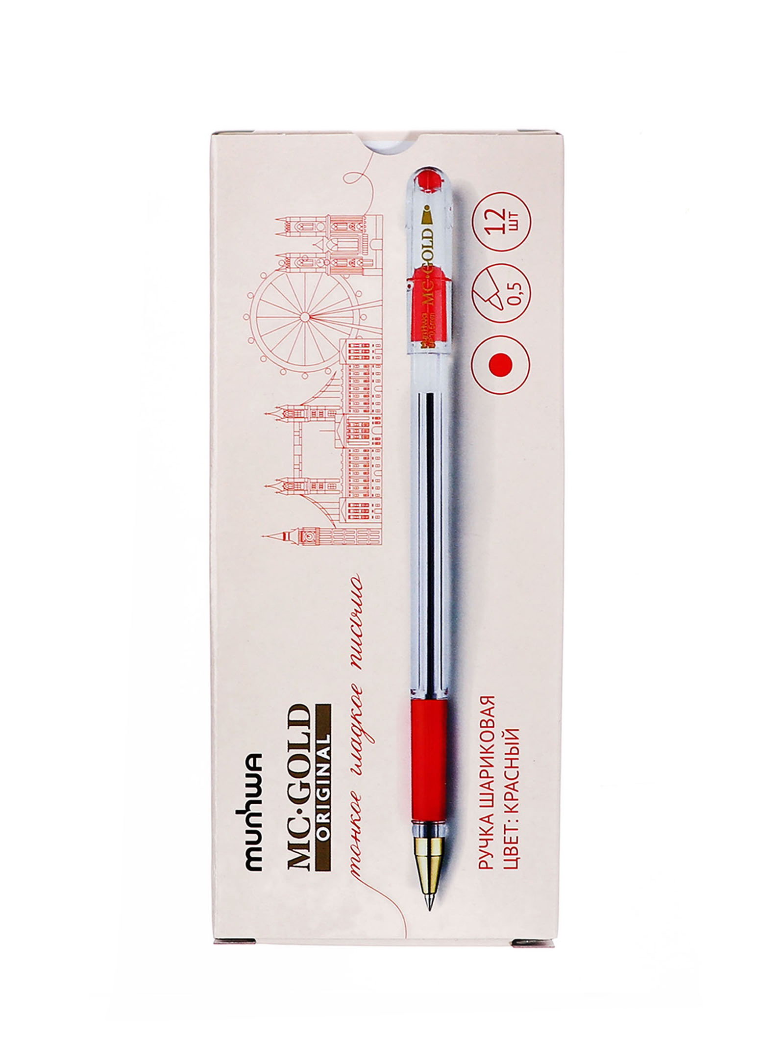 Ручка шариковая MC Gold, стержень красный, узел 0.5 мм, грип, MunHwa, Южная Корея