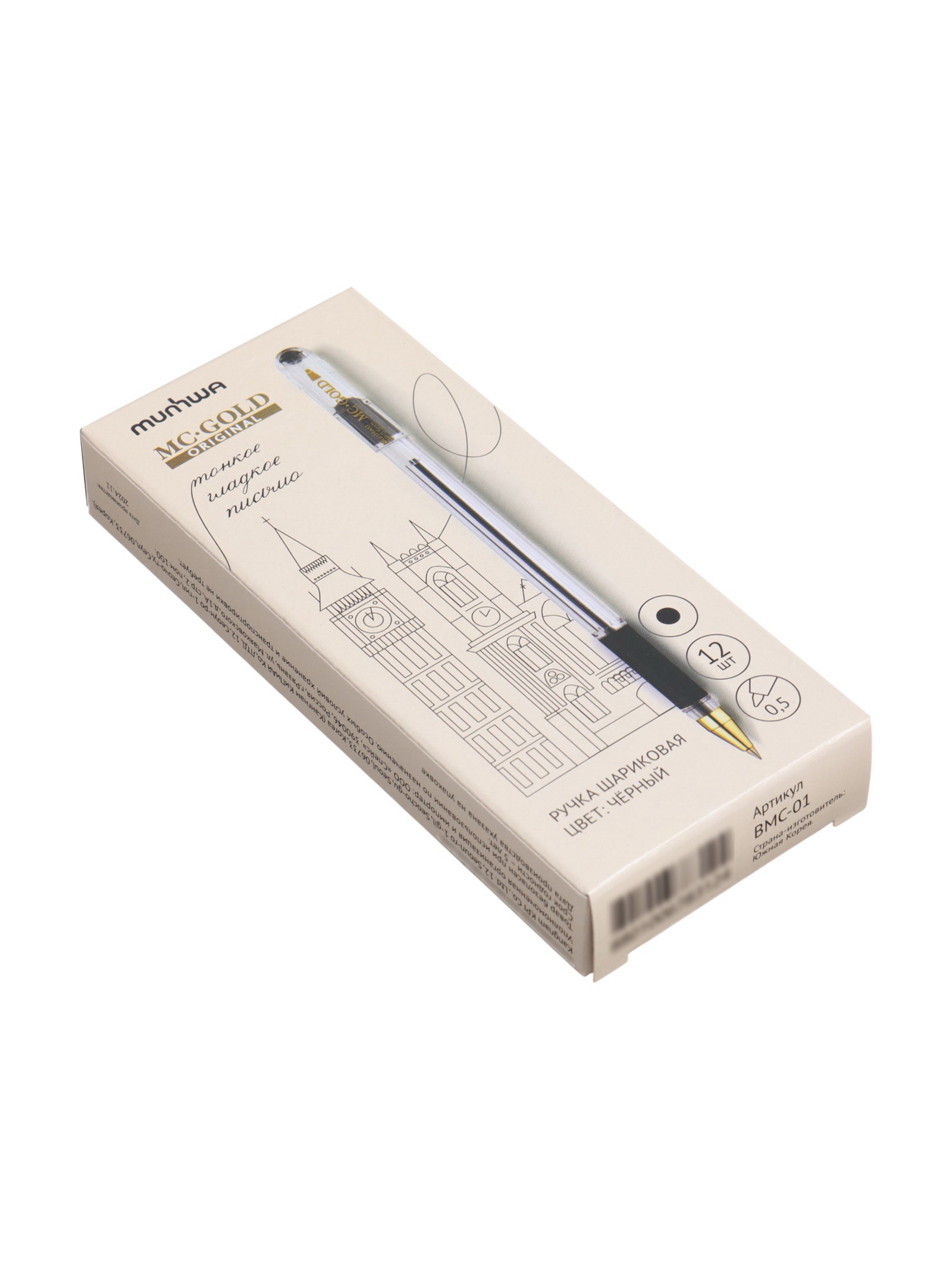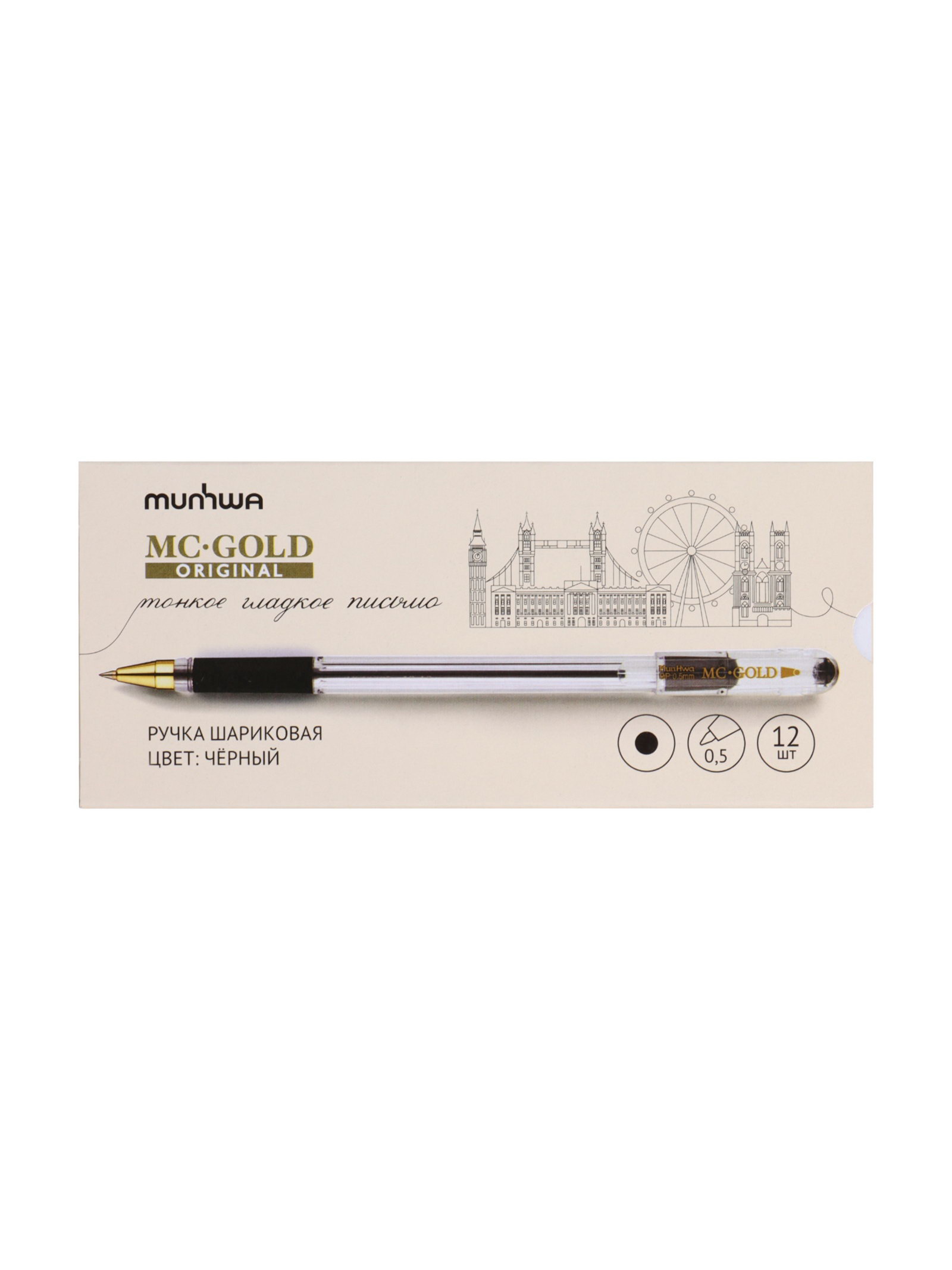 Ручка шариковая. MC Gold, чёрный стержень, узел 0.5 мм, резиновый упор, MunHwa, Южная Корея