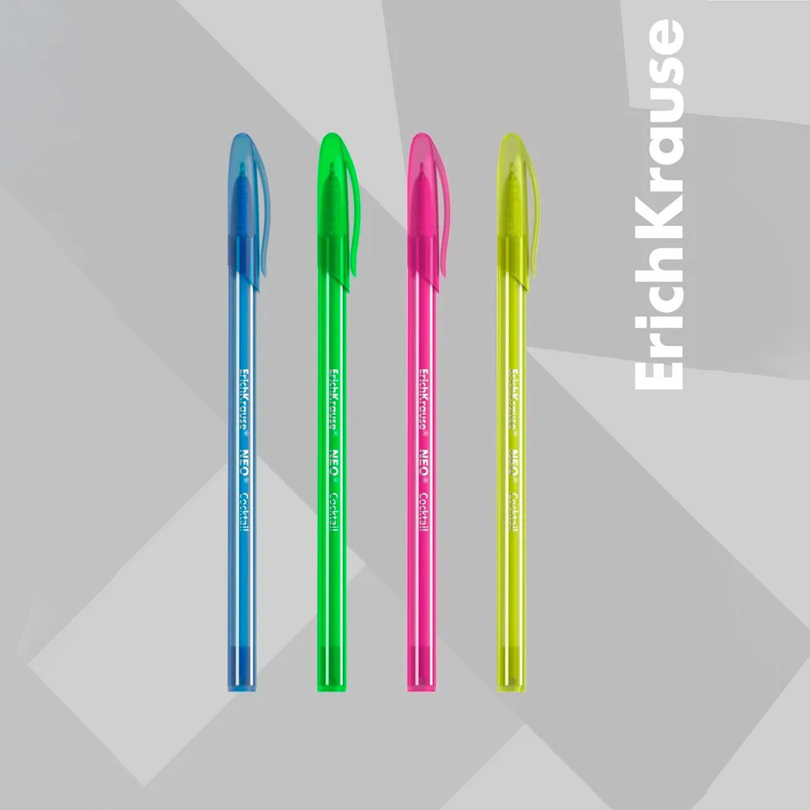 Набор ручек шариковых Erich Krause Neo Cocktail, 4 штуки, узел 0.7 мм, чернила синие, МИКС, 5.5x1.2x20 см., ErichKrause, Индия