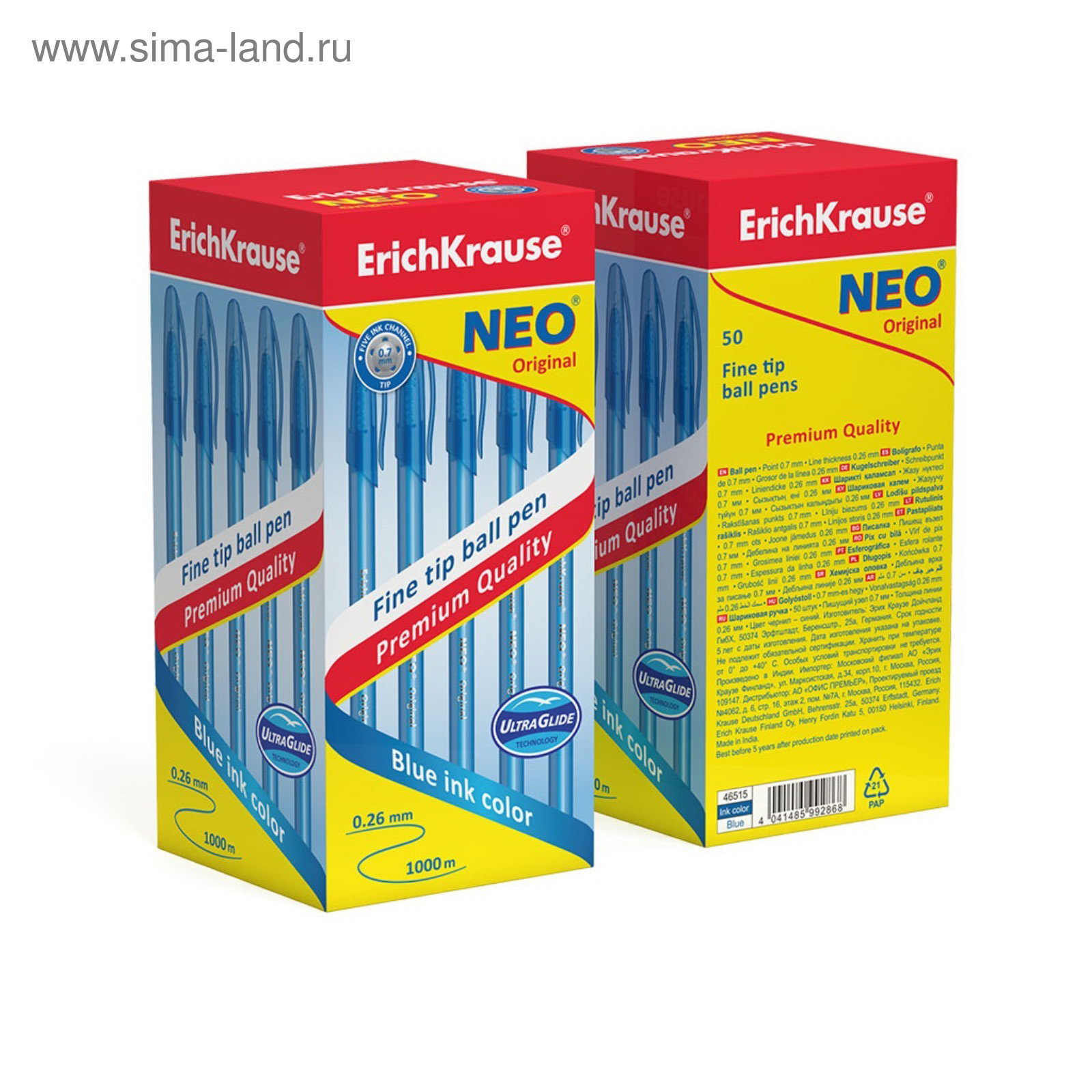Ручка шариковая Neo Original, игольчатый узел 0.7 мм, чернила синие, супермягкое письмо, длина линии письма 2000 метров, 1.3x7.8x14.8 см., ErichKrause, Индия