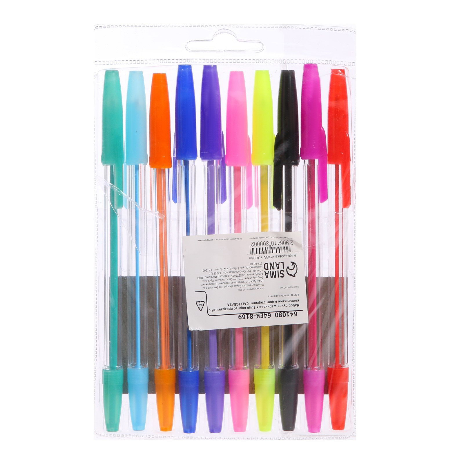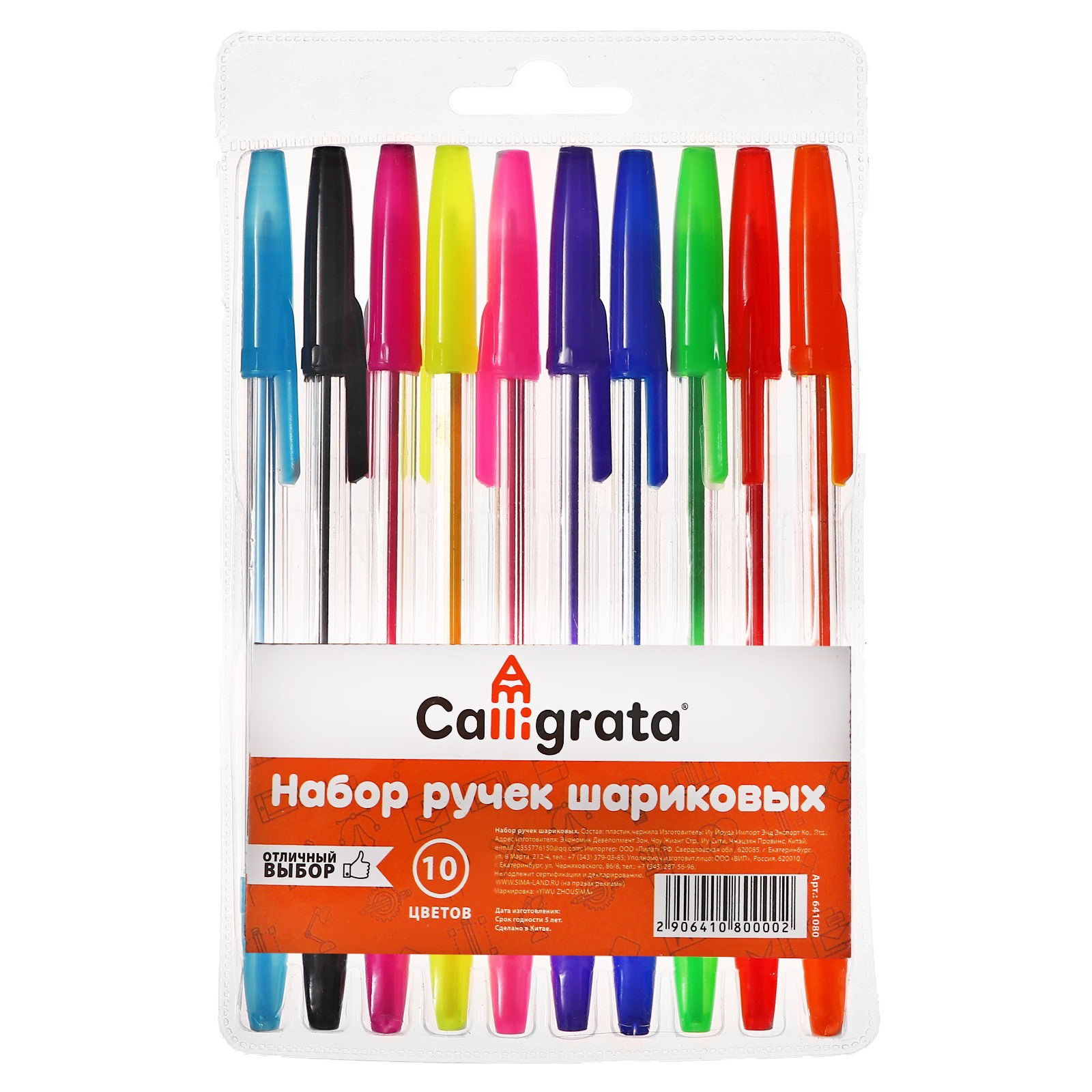Набор ручек шариковых, 10 цветов, корпус прозрачный, с цветными колпачками, 0.9x0.9x15.8 см., Calligrata, Китай