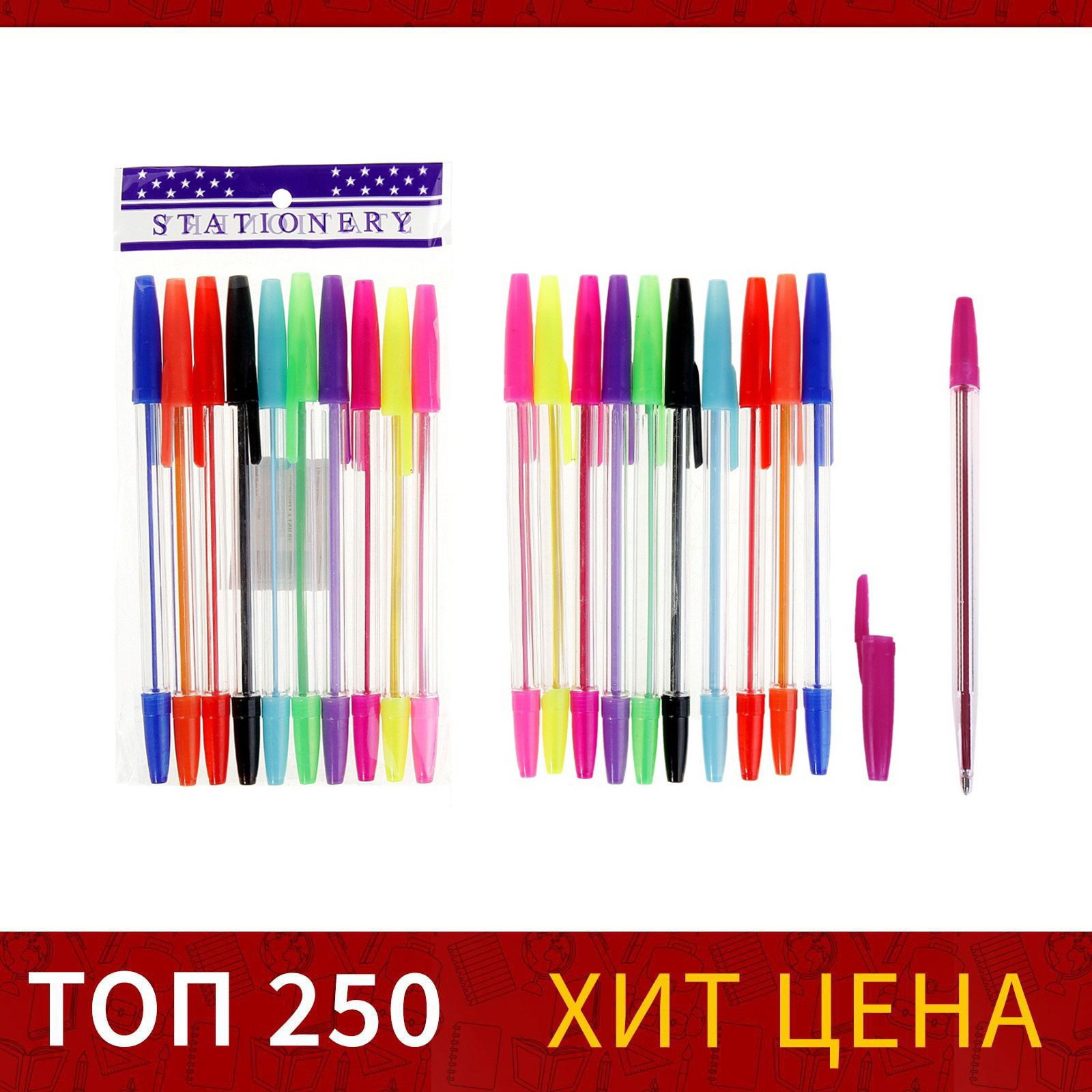 Набор ручек шариковых 10 цветов, корпус прозрачный, с цветными колпачками, 0.9x0.9x15.8 см., Calligrata, Китай