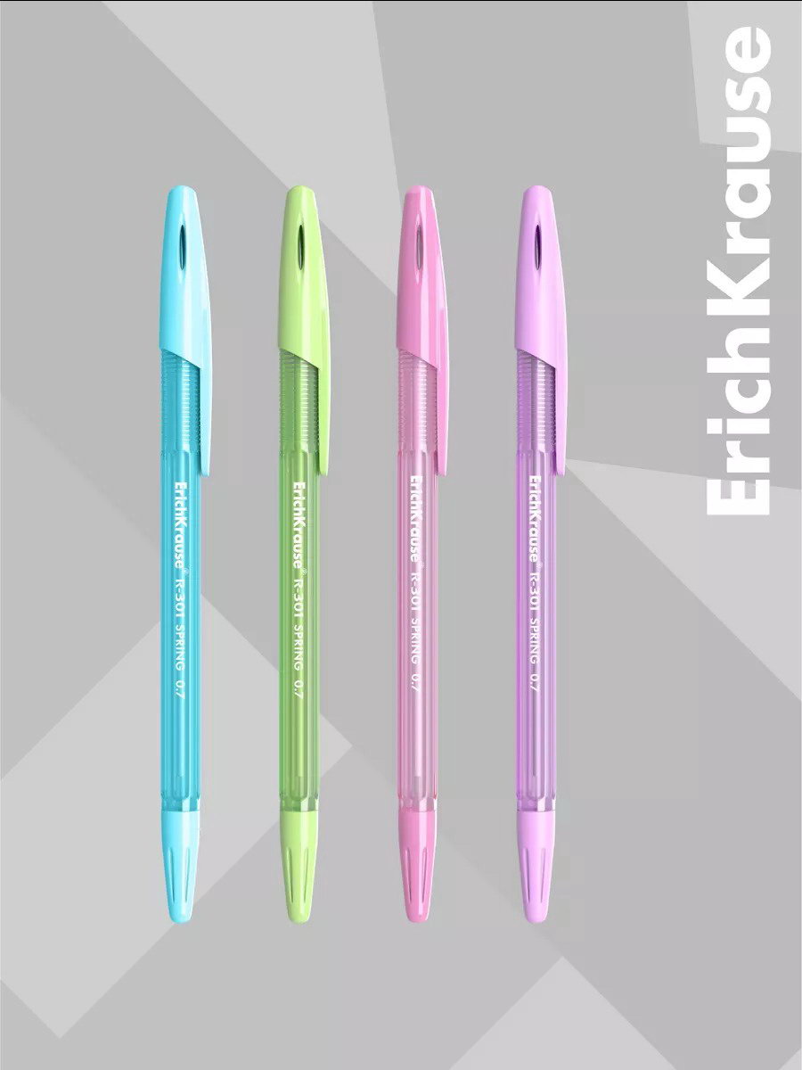 Ручка шариковая R-301 Spring Stick, узел 0.7 мм, чернила синие, длина линии письма 1000 метров, МИКС, 1x15x1 см., ErichKrause, Китай