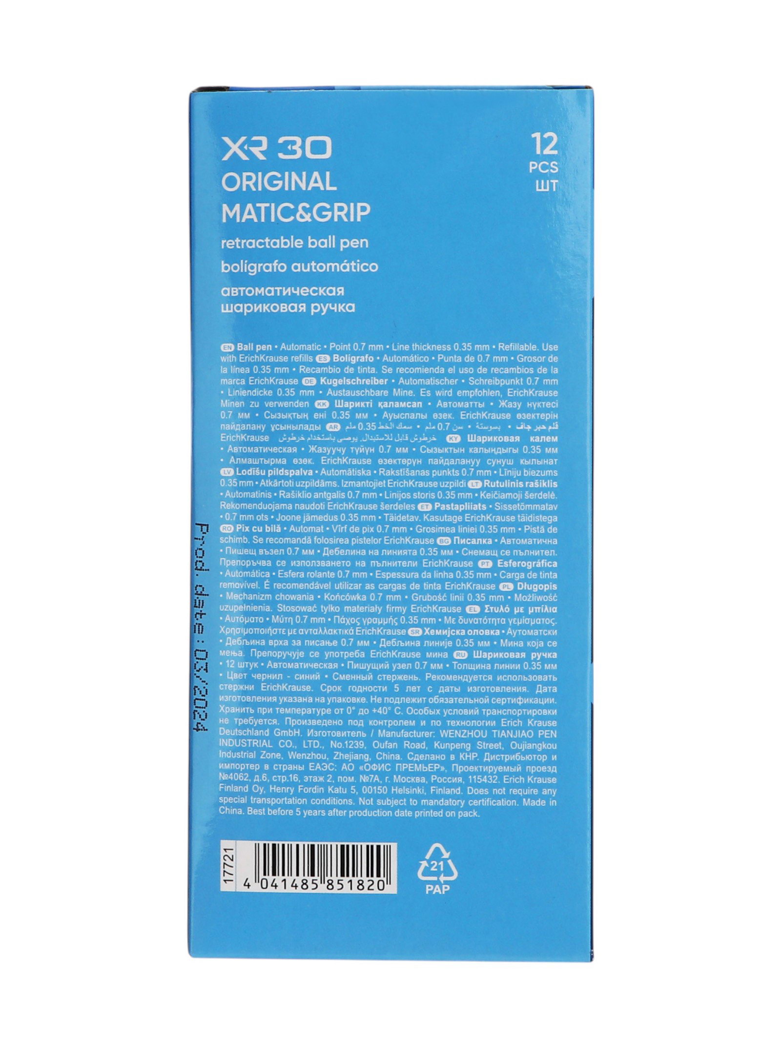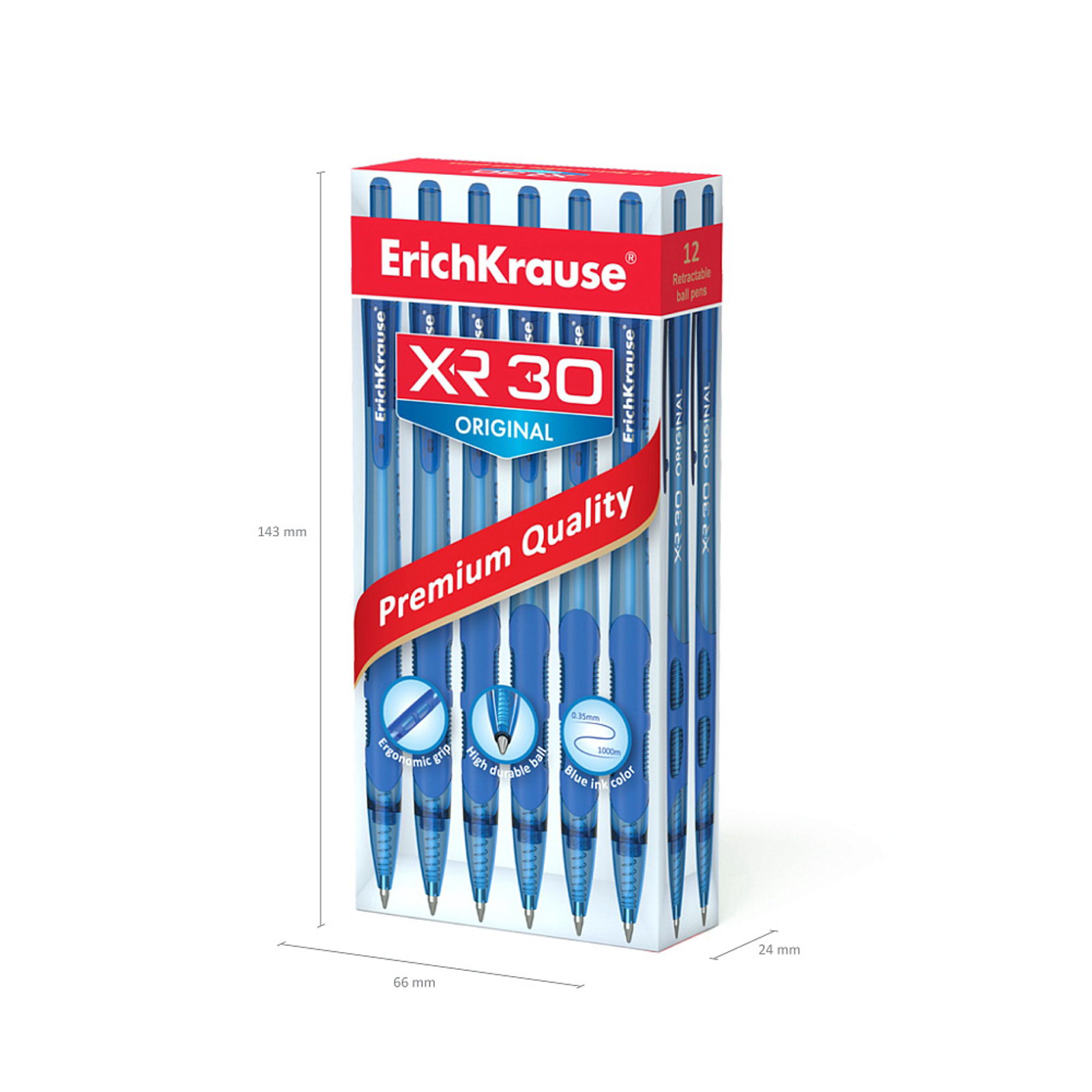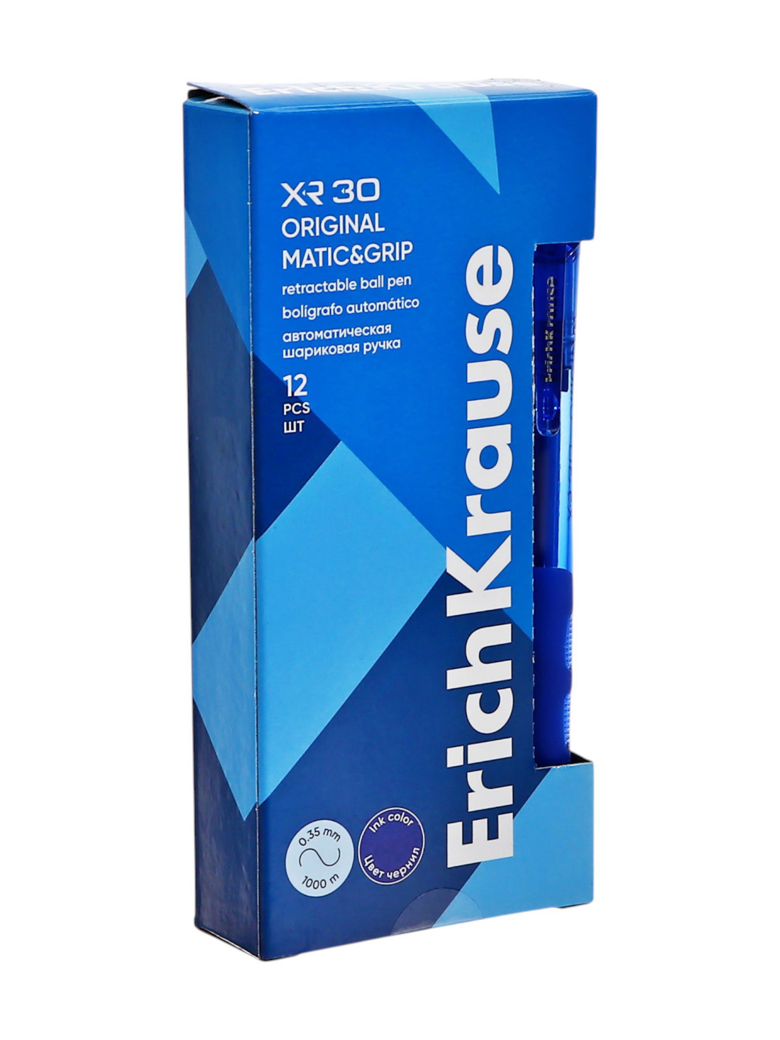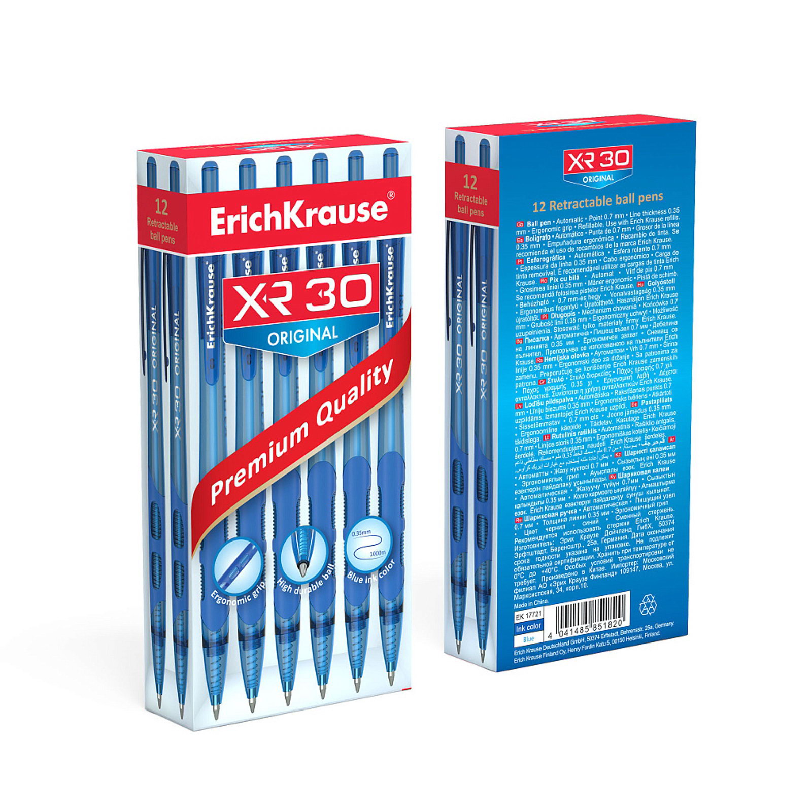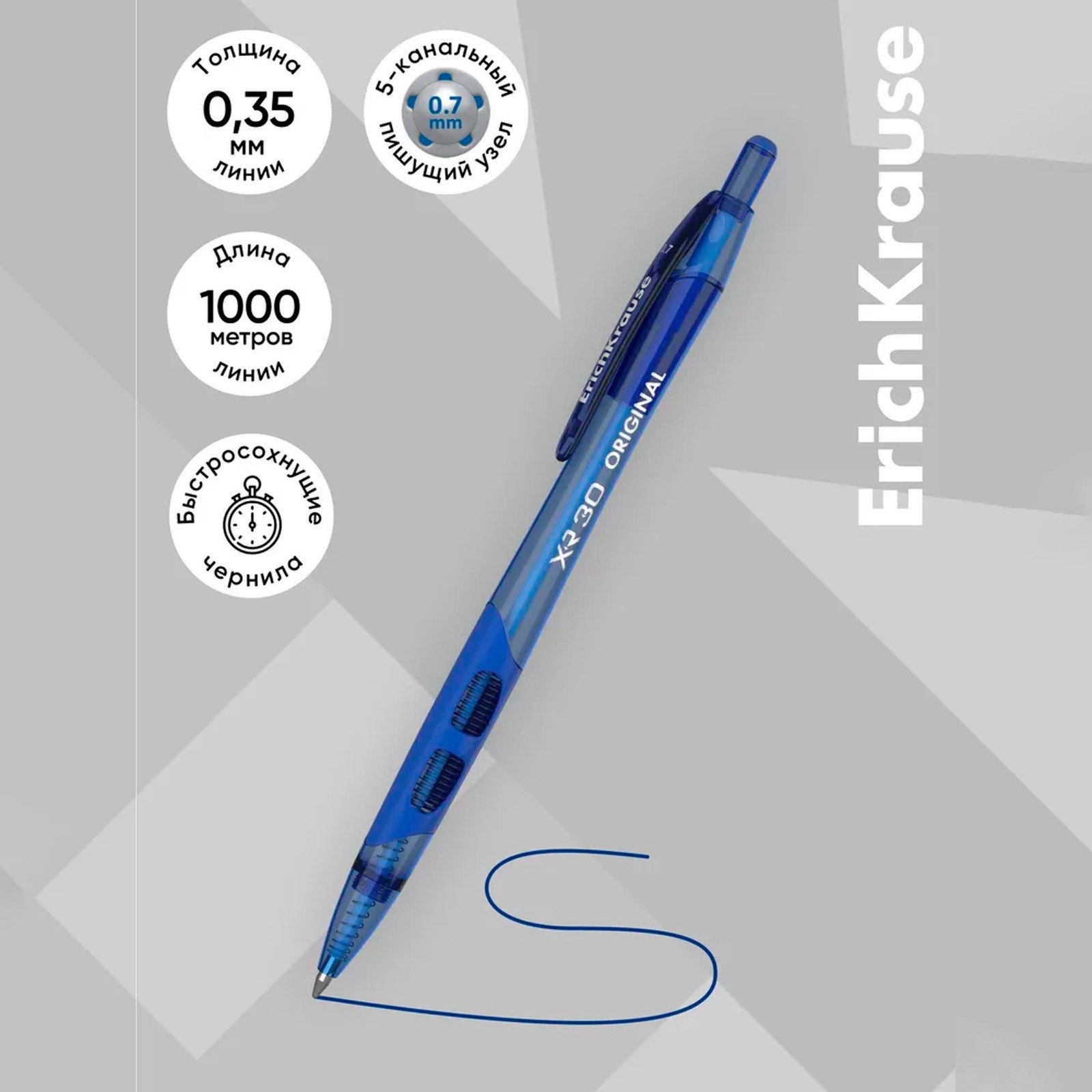 Ручка шариковая автоматическая XR-30, узел 0.7 мм, чернила синие, резиновый держатель, длина линии письма 1000 метров, 1x15x1 см., ErichKrause, Китай