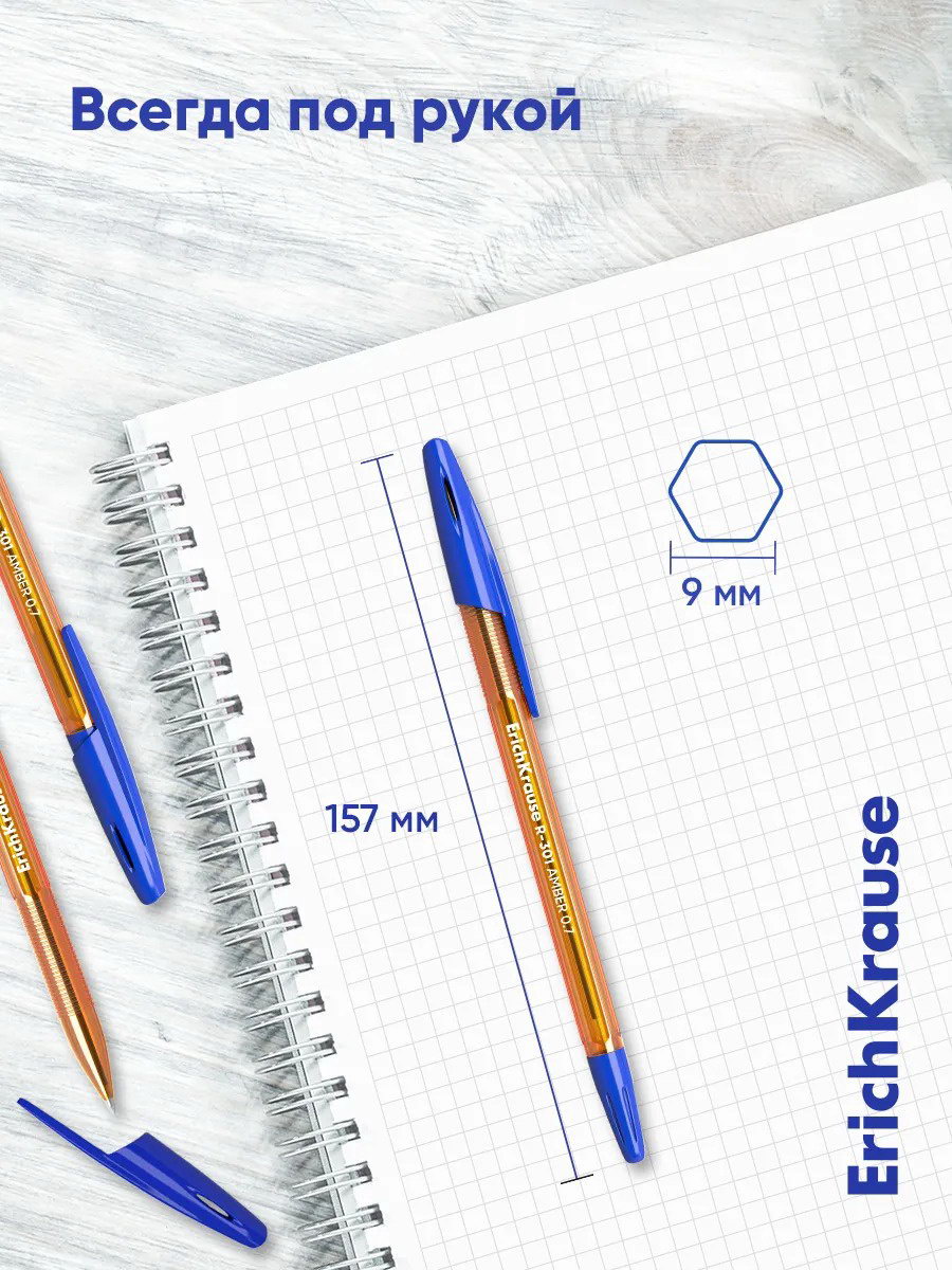 Ручка шариковая R-301 Amber Stick & Grip, узел 0.7 мм, чернила синие, резиновый держатель, длина линии письма 2000 метров, 0.9x15.5x1.2 см., ErichKrause, Китай