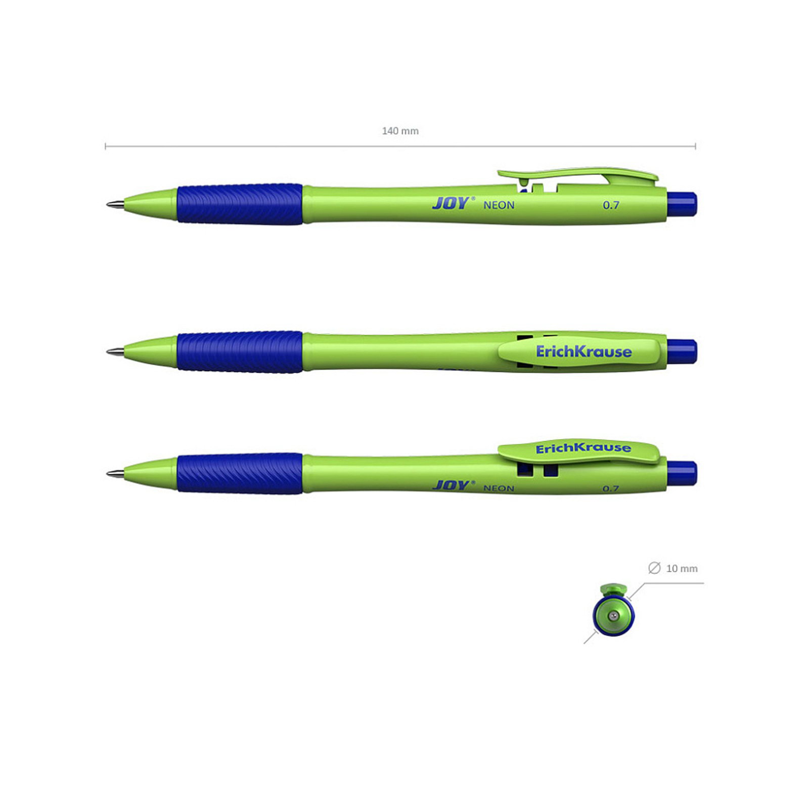 Ручка шариковая автоматическая JOY Neon, узел 0.7 мм, чернила синие, резиновый держатель, супермягкое письмо, длина линии письма 1300 метров, МИКС, ErichKrause, Индия