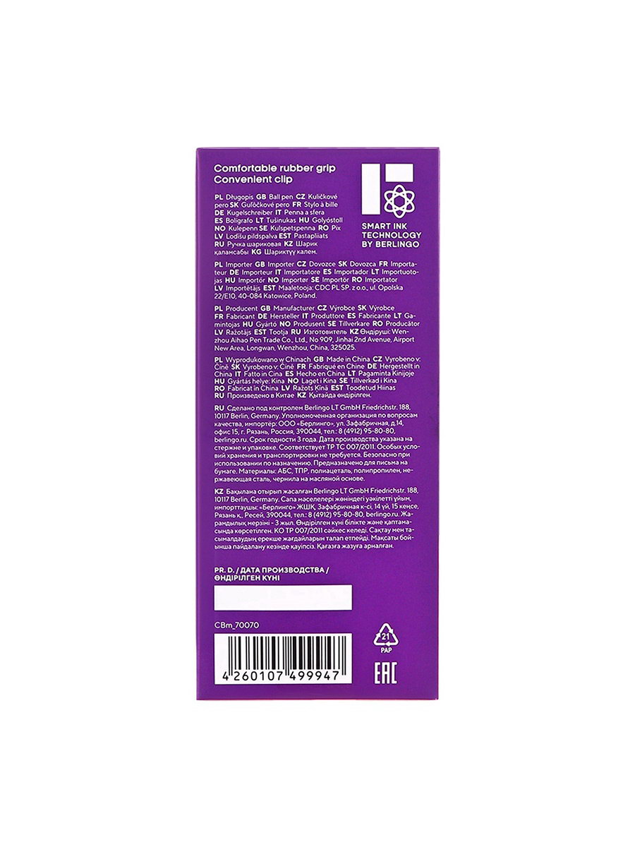 Особенности ручек: Резиновый упор, Ручки без футляра Размер упаковки: 1.5 x 0.7 x 15.2 см. Цвет: МИКС В наборе, шт.: 1 Реестр Минпромторга: Нет Наличие грипа: Да Количество цветов: 1 Количество цветов: 1 tnved: 9608101000 Диаметр пишущего узла, мм: 0.7 Тип: Автоматическая ручка Цвет стержня: Синий Стержень заменяемый: Да Европодвес: Нет Штрихкод на единице товара: Да Набор: Нет Вид ручки: Шариковая Шариковая автоматическая ручка Berlingo Riteline в стильном контрастном дизайне. Тонированный круглый корпус ручки с применением двойного литья, резиновая зона захвата и пластиковый клип создают дополнительный комфорт при письме. Диаметр пишущего узла составляет 0,7 мм, толщина линии письма – 0,5 мм, а длина письма – 1000 м.Цвет чернил: синяя,Толщина линии письма: 0,5 мм,Длина письма: 1000 м,Цвет корпуса: микс из 3-х цветов. | ||