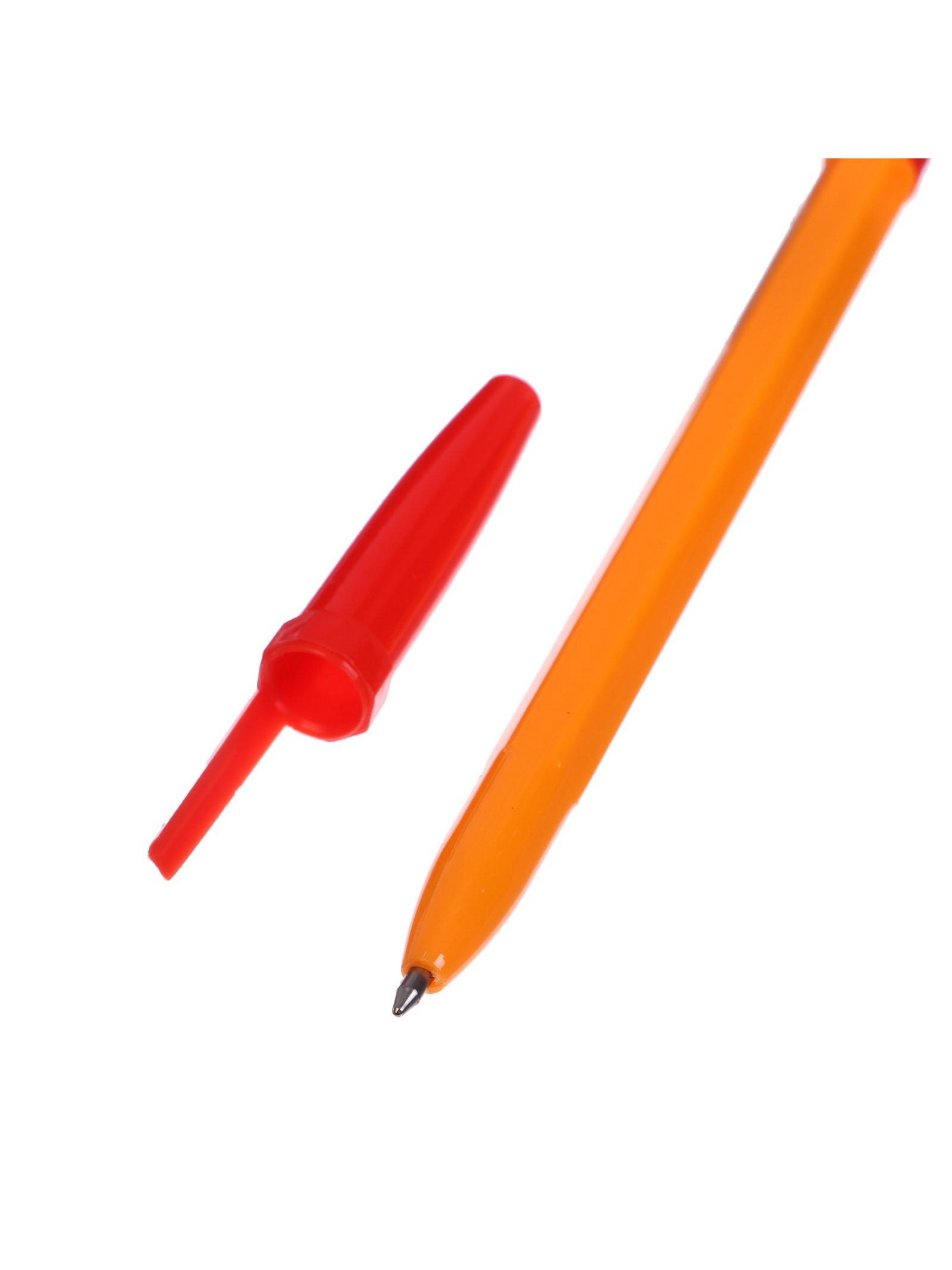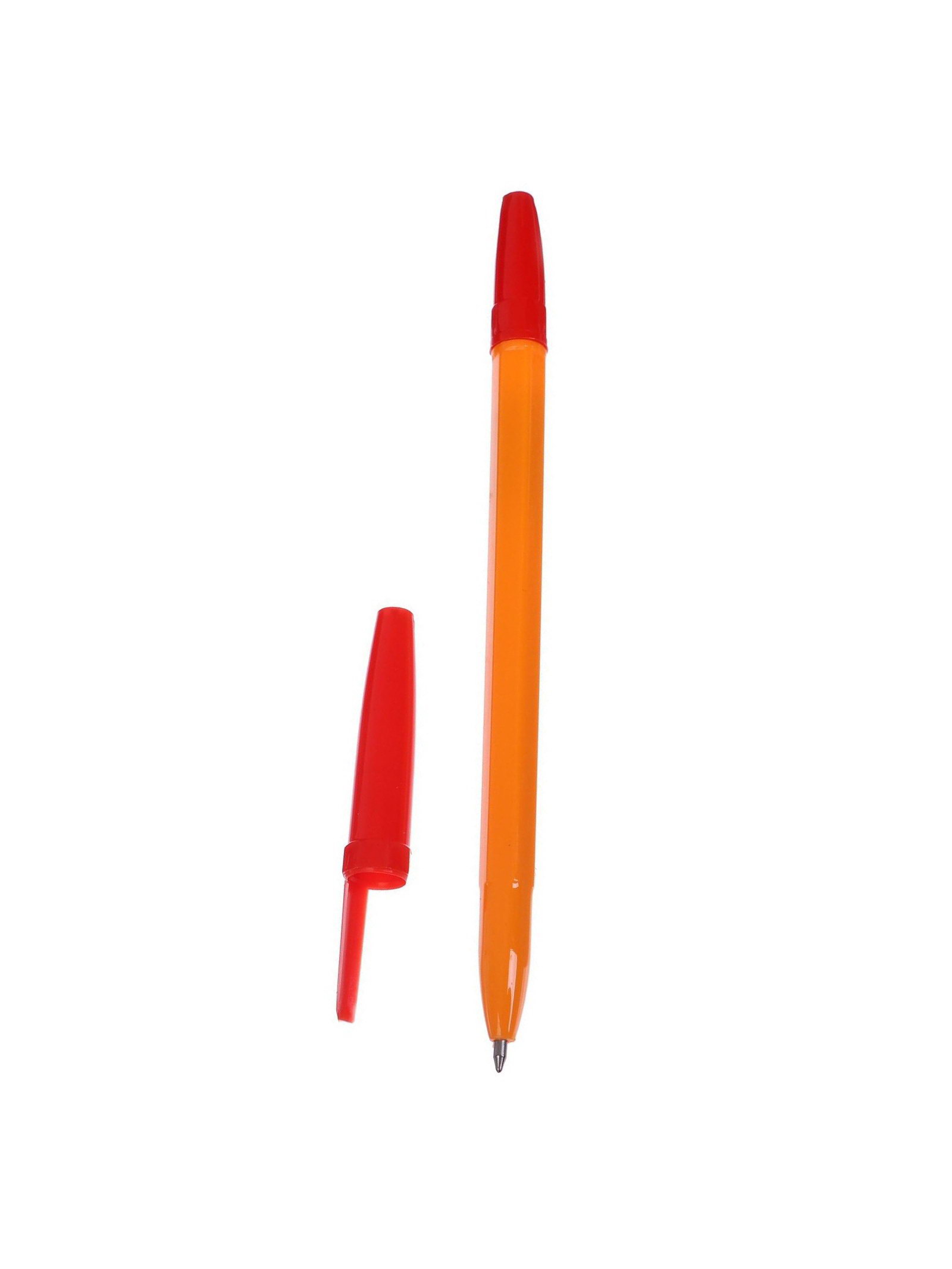 Ручка шариковая красный стержень, узел 0.7 мм, оранжевый корпус с красным колпачком, 0.9x0.9x15.5 см., Calligrata, Китай